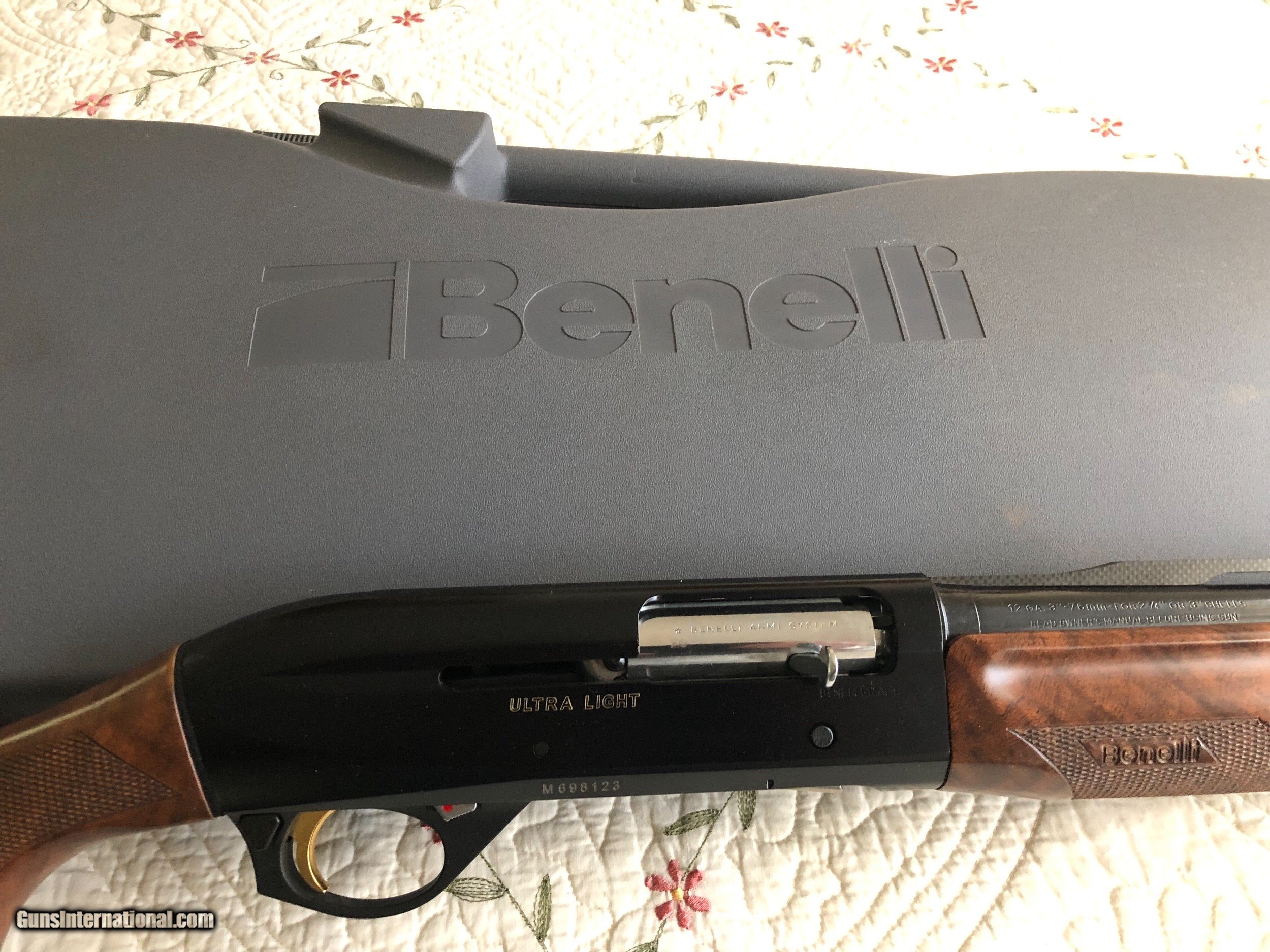 Description: Benelli 12 Ga Ultra Light - like new in box - only shot one day . SOLD Manufacturer: Benelli Model: Ultralight Bore: 12 Chambers: 23/4” Condition: Like new in box Action: Semi auto Gauge Info: 12 Butt Pad: Yes Rib: Yes Finish: Satin Weight: 5.1 Sights: Vent rib Chokes: 6 Case: Yes |