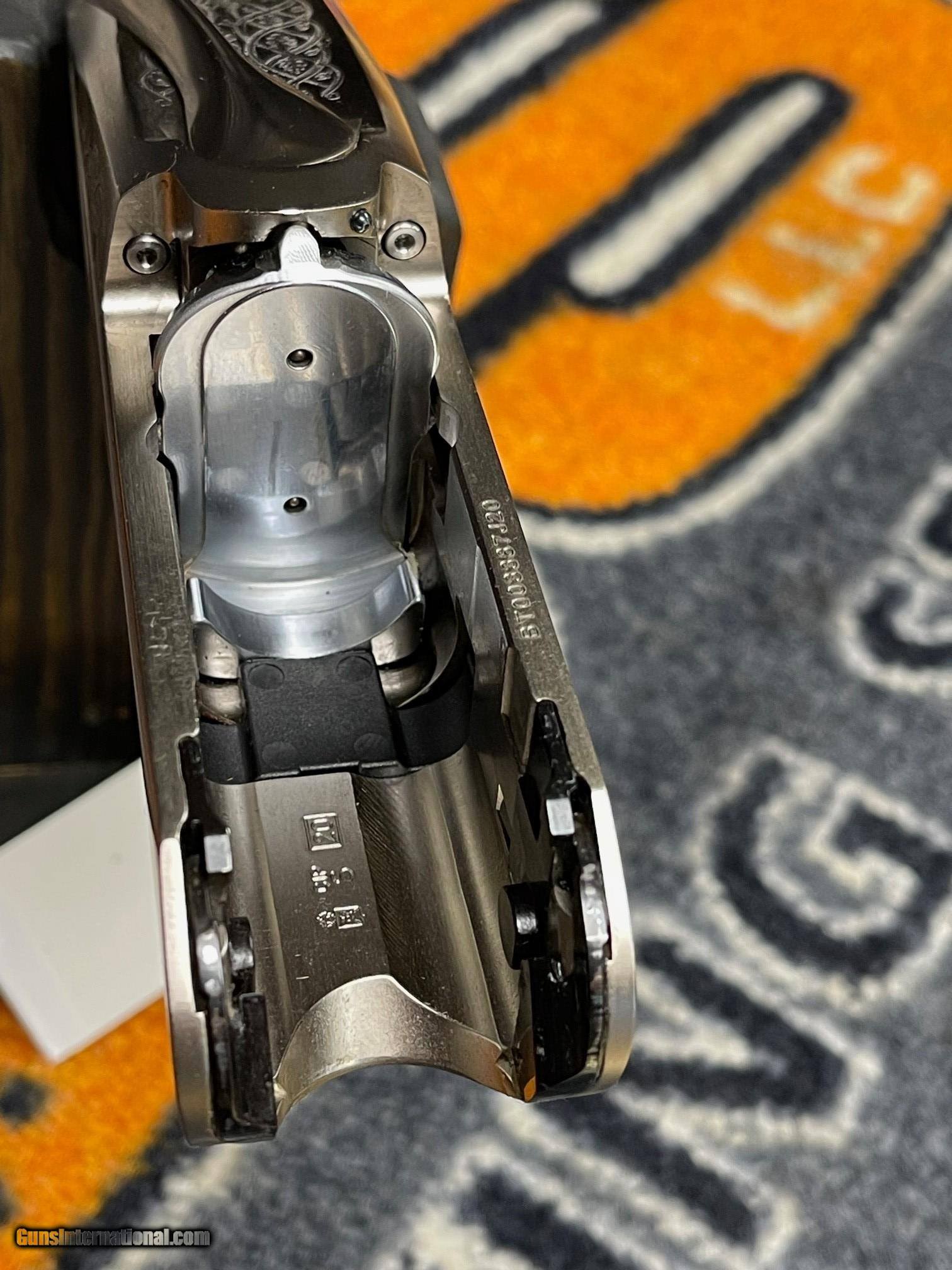 Description: SOLD SOLD SOLD - This one just arrived on trade and it is in excellent condition! The Benelli 828U 20ga is one of the most popular field guns on the market, not only for performance but also for it detailed adjustability. Less than 100 rounds fired! BENELLI'S PATENTED STEEL LOCKING SYSTEM Benelli's patented steel locking system eliminates wear and tear on the receiver and hinge that cause traditional O/U's to fail. The heart of Benelli's Steel Locking System is a solid steel breech block that locks directly to the monoblock, containing all pressure from the shotshell and preventing its transfer to the receiver and hinge pins. OPENING LEVER AUTO RECOCKING The 828 U triggers reset when the top lever is unlocked instead of by opening the barrels on a traditional over/under—creating a smoother, more consistent opening action. In addition, the ejector system in the 828 U is all contained in the barrel. This design allows for a stronger, more streamlined receiver by eliminating the need for linkages between the trigger group and the forend. BENELLI’S PROGRESSIVE COMFORT SYSTEM The Progressive Comfort System is contained within the 828 U walnut stock (shown in the cutaway images here). The flexible and lightweight polymer buffers compress to absorb recoil energy. The heavier the shot load, the more buffers come into play to help absorb and cushion the recoil. Flush Crio® Chokes & Wrench Crio® choke tubes C, IC, M, IM, F and wrench. Shim Kit The stock drop and cast is user-adjustable. Changing shims using this included kit provides a customized sighting plane to fit your unique physical build and shooting style. Standard Hard Case Standard hard case to protect your firearm. Steel Locking System Benelli's patented steel locking system eliminates wear and tear on the receiver and hinge that cause the traditional O/U's to fail. By incorporating this locking system into an aluminum receiver, we created a stronger, safer, lighter, O/U that perfectly balanced and weighs less than 6.5 pounds. Impulse Activated Ejectors The ejector system in the 828 U is all contained on the barrel. Pressure activates the ejector when the shell is fired. This innovative design eliminates need for linkages between the trigger group and the forend, resulting in a stronger, more streamlined ejector system. Removable Trigger Group The compact and removable trigger group makes for easier cleaning and eliminates complicated linkage between the forearm and trigger mechanism, significantly increasing reliability. Contact Don at Bad Oscar Shooting Sports 414-915-9609 SOLD Shotgun Gauge: 20 Gauge Manufacturer: Benelli Model: 828U Nickel Plated Serial Number: BT003387J20 Chambers: 2-2/3",3 Ejectors: Impulse Activated Condition: Excellent Metal Condition: Excellent Wood Condition: Excellent Bore Condition: Excellent Barrels: Over Under Action: Break Action Triggers: Removable Stock: Turkish Walnut Stock Dimensions: Progressive Comfort Stock Comb: Drop at Comb 1-1/2 Stock Heel: Drop at heel 2-1/8 Butt Pad: Rubber LOP: 14-3/4 Finish: Engraved Nickel Plated Weight: 5lbs 14oz Sights: Red, Fiber-Optic Front Manufacture Date: 2020 Engraving: Yes Item Location: Wisconsin |