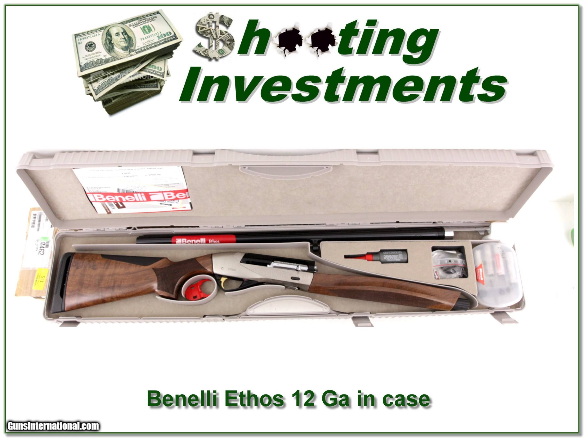 Description: This is a NEW and UNFIRED Benelli Ethos 12 Gauge. It has beautiful walnut and silver engraved receiver. The barrel is a 28in Vent Rib. It comes as seen in original case and all papers and accessories. I am selling this one on consignment and as such lay-a-way can’t be used. It does of course have the standard 3-day inspection. Shipping with insurance is $39. Please email me with any questions or larger pictures. (Consign your quality firearms with Shooting Investments for only 12%! Let me know if you have any you would like to sell!) 19-0918 Payment: Payment is by Money Order, Cashiers Check or Personal Check. I can now also accept Credit Cards (MasterCard, Visa, Discover & American Express) with a 3% convenience fee. PayPal can be used for some items but never for firearms. Shipping: The shipping charge will be listed in each description. It is $39 for most firearms. Some heavy guns or those insured for over $2000 will be higher. Shipments to Alaska and Hawaii are higher because air shipment is required. Most firearms are shipped on Tuesday and Thursday and usually in 5 days of receipt of payment. We package all shipments carefully and insure them. Optics are shipped Priority Mail and most other non-firearm shipments are shipped First Class. Returns: Our return policy is simple. If for any reason you are not pleased with your purchase, you may return your item for a full refund of purchase price. Ammunition cannot be returned. It is important to us that you are happy. Guns cannot be fired or dissembled before returning them and they must be returned in the same condition as received. Notification of a return must occur with-in 3 days of receipt at your dealer. Shipping, convenience and dealer fees are not refundable and are the responsibility of the buyer. Lay-a-way: If needed, we offer a 60 day lay-a-way option on most firearms. It is 1/3 now, 1/3 in 30 days and 1/3 in 60 days. Lay-a-way firearm sales are final and if not completed the first payment cannot be returned. Consigning your firearms with Shooting Investments: We will help you get top dollar for your firearms. While most local guns shops charge 20% or more, our fee is only 12% with a minimum of $75. At your local gun shop it might take months to sell. Selling on-line provides instant access to thousands of interested buyers. You won’t find any other on-line dealer willing to sell your firearms for only 12% or listing every gun on 3 separate s. Selling through an House typically costs the seller 15% and the buyer an addition 15% (so 30%) and you have to wait several months to sell and longer to receive funds. If properly priced, we will sell your firearms in a few weeks. Send us an email or give us a call and we’ll explain how easy it is for you to get top dollar. Trading: Trading for use is really just buying your gun to re-sell. If you have a gun you want to trade, please email a picture and we will let you know what we can give or it. You will always get more if we sell it for you on consignment. Help for California Buyers: We are happy to ship to California. It is the buyer’s responsibility to make sure any item you buy is legal in your state. We are also happy to help with your purchase of a firearm from someone other than us. If you see a gun you would like to buy but the seller can’t or won’t ship to California they can ship to use and we’ll then ship it to your California dealer. The cost for this service is only $30 + shipping. Let us know if we can help! SOLD |