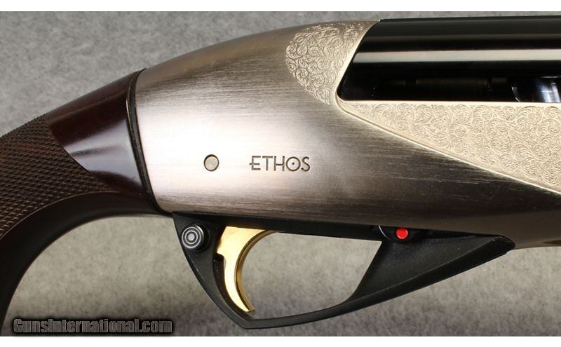 Description: Benelli Ethos 12 gauge semiautomatic shotgun, built in Italy and imported through Benelli USA corp. The stainless action has beautiful etching paired with a 28" dark blued barrel. The barrel is topped by a ventilated carbon rail with a high visibility red front bead and smaller medal min-bead. The checkered Foregrip and pistol grip stock are in excellent condition, stay for minor marks in the wood. The action is smooth and effortless, able to be locked to the rear. A Progressive Comfort butt pad is at the end of the stock with little wear. 12 Gauge SOLD Chambers: 12 Gauge Metal Condition: Blued barrel and stainless steel action in excellent condition. Wood Condition: Checkered foregrip and pistol grip are in excellent condition with minor marks. Bore Condition: Bore is smooth with high shine. Barrels: 28" Blued. Triggers: Gold-plated trigger. Fore End: Checkered walnut foregrip. Butt Pad: Progressive Comfort butt pad. Weight: 6 lbs 12 oz Sights: "Ventilated carbon rail, with red high visibility bead and mid-bead. Chokes: Modified choke. Item Location: Tualatin, OR |