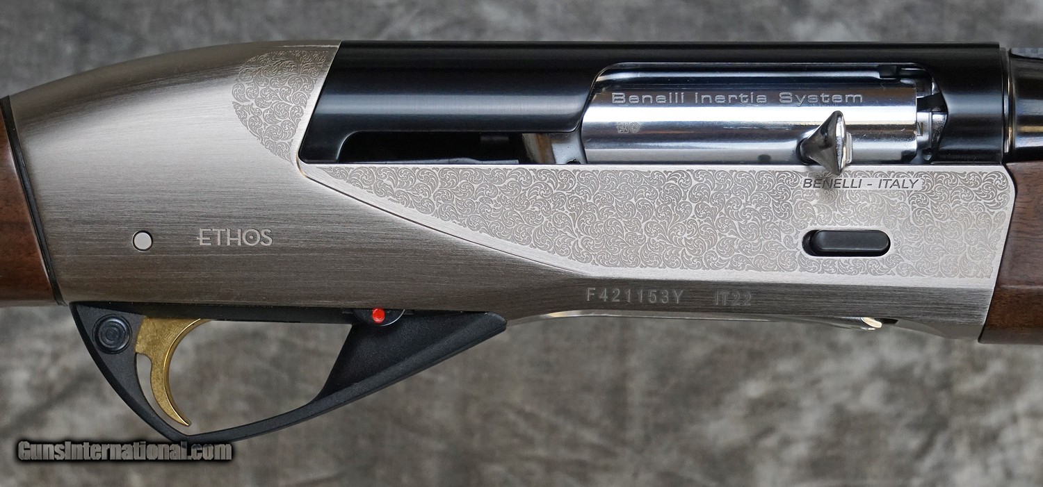 Description: New Benelli Ethos Nickel Field 12GA with 28" carbon fiber rib barrel, factory choke tubes. Nickel finished two-piece action, factory pistol grip stock with Progressive Comfort recoil reduction system, field forearm. Includes factory hard case, chokes and tools. SOLD Shotgun Gauge: 12 Gauge |