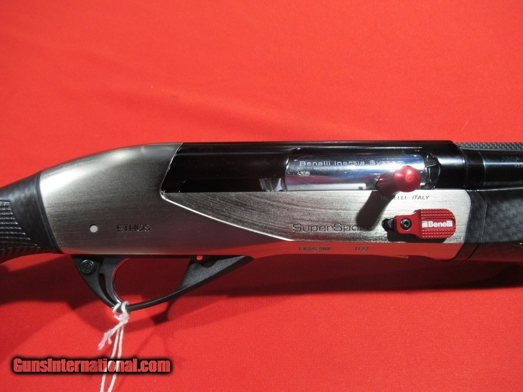 Description: Benelli Ethos Super Sport Perfromance Center 12ga/30" Multichoke (NEW)-- Benelli's Ethos Super Sport Performance Shop: carbon fiber stock and forend, satin nickel receiver, gloss blue finish on the barrel, wide target style rib that is made out of carbon fiber, steel mid bead with fiber optic front post, ported barrel, Comfort Tech 3 recoil reduction system, beveled loading port, five extended factory choke tubes (Cyl, IC, M, IM, F) and two Briley Spectrum choke tubes (Skt and LM), oversized bolt release button, extended bolt handle, weighted forend cap, backbored barrel, tuned trigger group shims to adjust drop and cast, factory hard case. In stock for immediate delivery. Please call for pricing. SOLD |