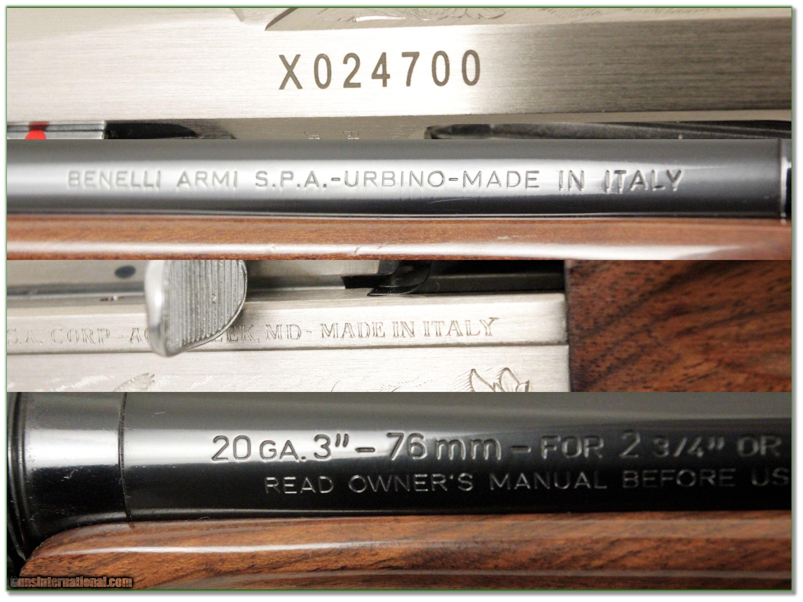 Description: This is a high end Benelli Legacy 20 gauge. The metal as new. The wood has just a couple insignificant marks. It has a 26in barrel and comes with a Skeet choke tube. I am selling it on consignment and as such lay-a-way can’t be used. It does of course have the standard 3-day inspection. Shipping and insurance is $39. Please email me with any questions or larger pictures. (Consign your quality firearms with Shooting Investments for only 10%! Let me know if you have any you would like to sell!) 18-0111 Payment: Payment is by Money Order, Cashiers Check or Personal Check. I can now also accept MasterCard and Visa with a 3% convenience fee. PayPal can be used for some items but never firearms. Please let us know if you would like to pay via PayPal. Shipping: The shipping charge will be listed in each description. It is $39 for most long guns and $29 for most handguns. Some heavy guns or those insured for over $2000 will be higher. Shipments to Alaska and Hawaii are higher because air shipment is required. Most firearms are shipped on Tuesday and Thursday and usually in 5 days of receipt of payment. We package all shipments carefully and insure them. For long guns you can purchase a new Plano case for $19. They now cost us $22 when buying 100 at a time. Optics are shipped Priority Mail and most other non-firearm shipments are shipped First Class. Returns: Our return policy is simple. If for any reason you are not pleased with your purchase, you may return your item for a full refund of purchase price. Ammunition cannot be returned. It is important to us that you are happy. Guns cannot be fired or dissembled before returning them and they must be returned in the same condition as received. Notification of a return must occur with-in 3 days of receipt at your dealer. Shipping, convenience and dealer fees are not refundable and are the responsibility of the buyer. Lay-a-way: If needed, we offer a 60 day lay-a-way option on most firearms. It is 1/3 now, 1/3 in 30 days and 1/3 in 60 days. Lay-a-way firearm sales are final and if not completed the first payment cannot be returned. Consigning your firearms with Shooting Investments: We will help you get top dollar for your firearms. While most local guns shops charge 20% or more, our fee is only 10% with a minimum of $75. At your local gun shop it might take months to sell. Selling on-line provides instant access to thousands of interested buyers. You won’t find any other on-line dealer willing to sell your firearms for only 10% or listing every gun on 3 separate s. Selling through an House typically costs the seller 15% and the buyer an addition 15% (so 30%) and you have to wait several months to sell and longer to receive funds. If properly priced, we will sell your firearms in a few weeks. Send us an email or give us a call and we’ll explain how easy it is for you to get top dollar. Trading: Trading for use is really just buying your gun to re-sell. If you have a gun you want to trade, please email a picture and we will let you know what we can give or it. You will always get more if we sell it for you on consignment. Help for California Buyers: We are happy to ship to California. It is the buyer’s responsibility to make sure any item you buy is legal in your state. We are also happy to help with your purchase of a firearm from someone other than us. If you see a gun you would like to buy but the seller can’t or won’t ship to California they can ship to use and we’ll then ship it to your California dealer. The cost for this service is only $30 + shipping. Let us know if we can help! SOLD |