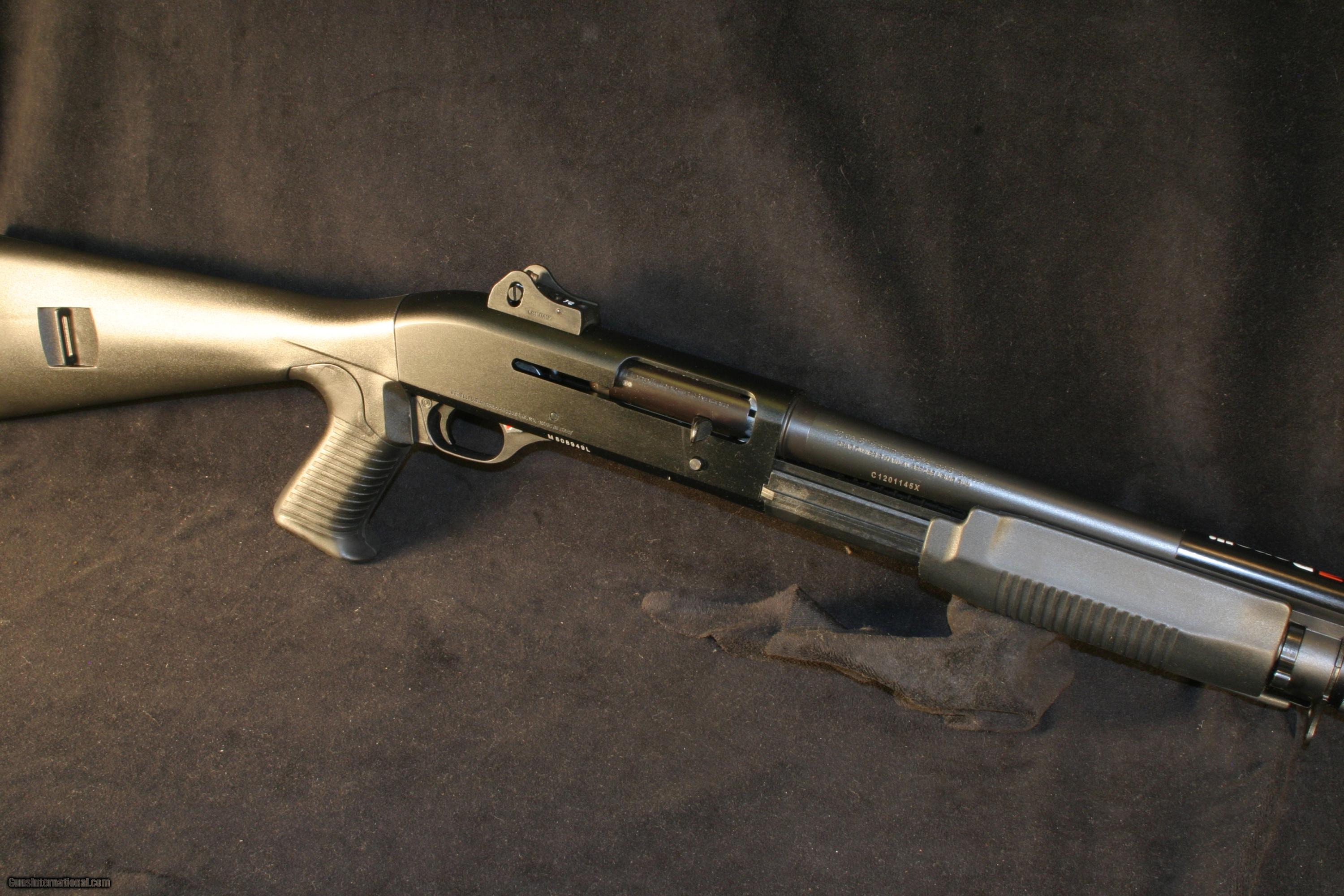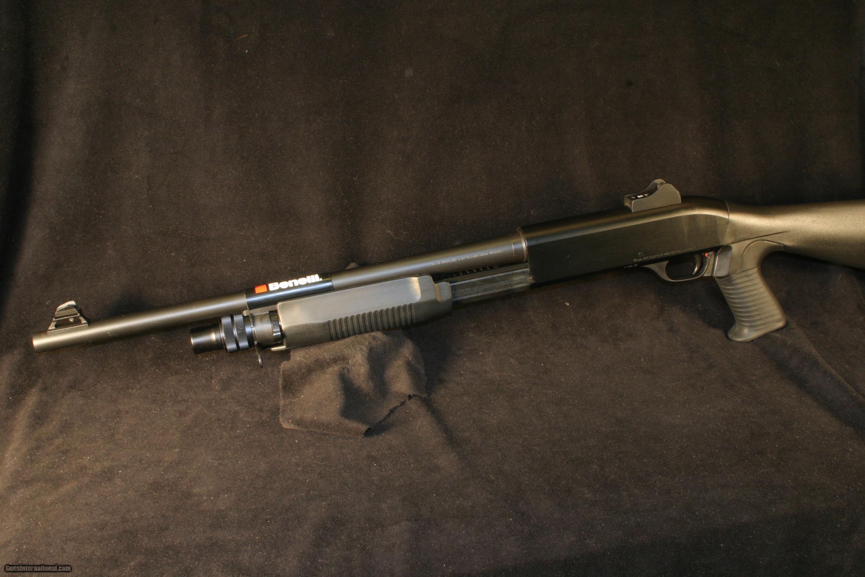 Description: Benelli M3 Convertible 12GA Black Shotgun SPRING CLOSE OUT! Special price MSRP 1600.00 The M3 Convertible is a no-nonsense shotgun that military and police all over the world depend on. This shotgun can be quickly changed from a fast cycling semi-auto for conventional loads to a manual pump action for low energy special purpose loads such as gas beanbag and rubber bullet loads. For semi-auto action merely rotate the selector ring 1/4 turn push the forend forward and release the selector to switch back to pump action simply reverse the procedure by pulling back after the selector ring is rotated to lock the forend to the action bars. (Option two) To change between semi-auto and pump action simply rotate the selector ring at the front of the forend 1/4 turn then push forward to change from pump action to semi-auto or pull back to switch from semi-auto to pump action and then release the selector. The M3 Convertible is available with matte black synthetic stocks fully adjustable ghost-ring aperture rear sights and military style fixed-blade front sights. If your life depends on it then depend on a Benelli. Magazine Capacity: 5+1 Choke: Fixed Cylnder Caliber: 12 Gauge Stock Type Synthetic MPN: 11606 UPC: 650350116069 Gauge: 12ga Stock: Black Synthetic with pistol grip Action: pump or semi-auto Barrel Length: 15.1-20" Overall Length: 45.6'" Weight: 7.2 lbs. SOLD |