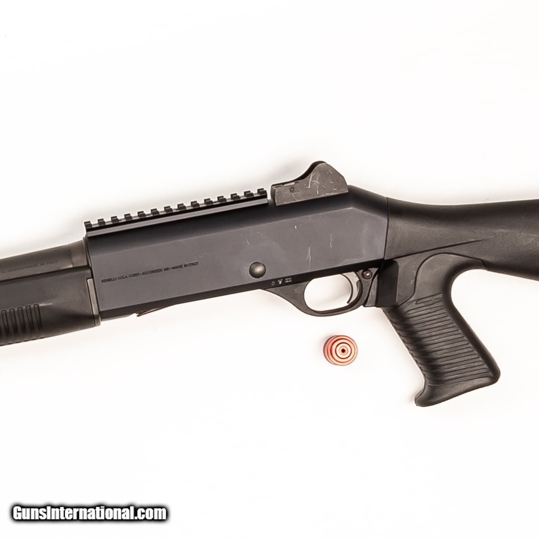 Description: Guns Listing ID: 856395 The Benelli M4 Tactical is a rugged and dependable shotgun. It was designed for military applications and has seen heavy use by Marines and a variety of law enforcement agencies around the world. This 12-gauge M4 Tactical is in excellent condition! It has a 3\" chamber and a MOD choke tube. Purchase includes the original box, original mag tube spring and parts, and an oil bottle. Get the best bang for your buck when you get a Certified Used Firearm . When you see the Certified Used stamp on any of our firearms, you can be confident that you’re getting exactly what you want – a gun only in very good to excellent condition and held to the highest quality standard. All Certified Used Guns come with a ‘no questions asked’ return policy . PLUS, ALL CERTIFIED USED GUNS SHIP FREE! SOLD Manufacturer: BENELLI Model: M4 TACTICAL Condition: Used - Certified Barrels: 18.5 BARREL Finish: BLACK |