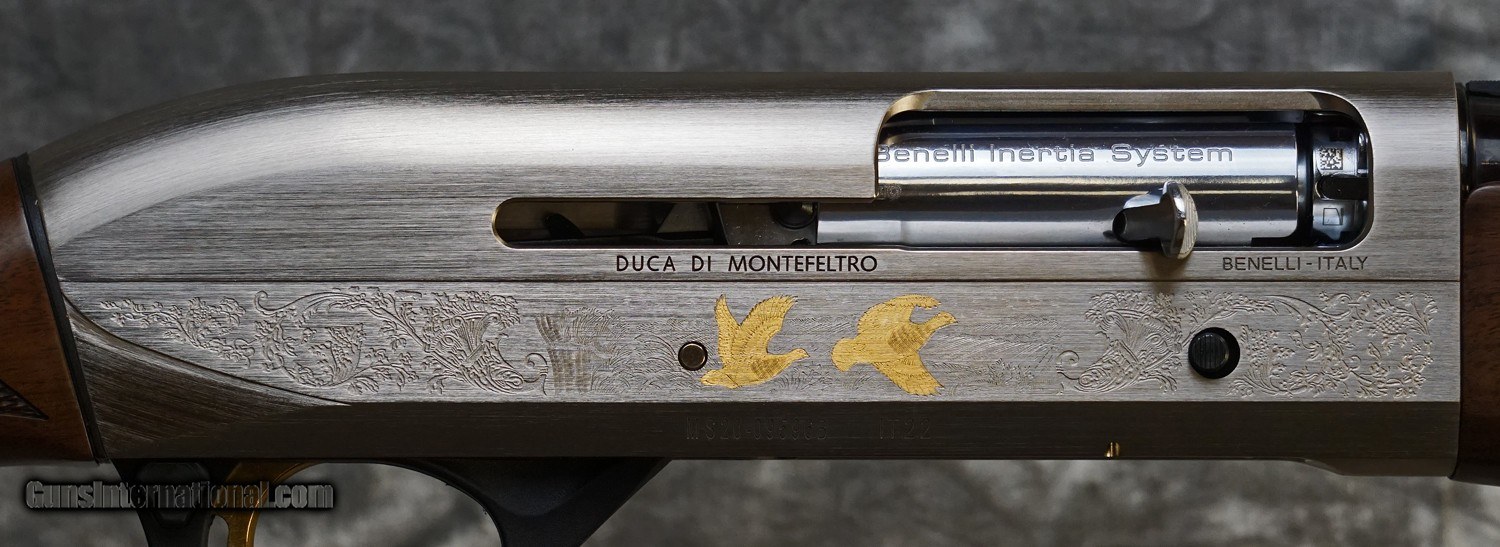 Description: New Benelli Montefeltro Silver Field 20GA with 26" factory choke tubed barrel, flat field rib. Nickel finished action with game scenes and scrolls, factory pistol grip field stock with field forearm. Includes factory case, chokes and tools. SOLD Shotgun Gauge: 20 Gauge |