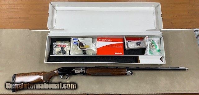 Description: A mint condition Benelli Montefeltro Sport 12 Ga with 30 Inch barrel and exceptional wood for this model. Previous owner installed a shell catcher (easily removed) and fired a total of 75 cartridges through this shotgun. It remains in like new condition with box, papers, info regarding the shell catcher, etc. Impossible to improve upon especially with the extra grade of walnut as shown in the photos. SOLD Shotgun Gauge: 12 Gauge |