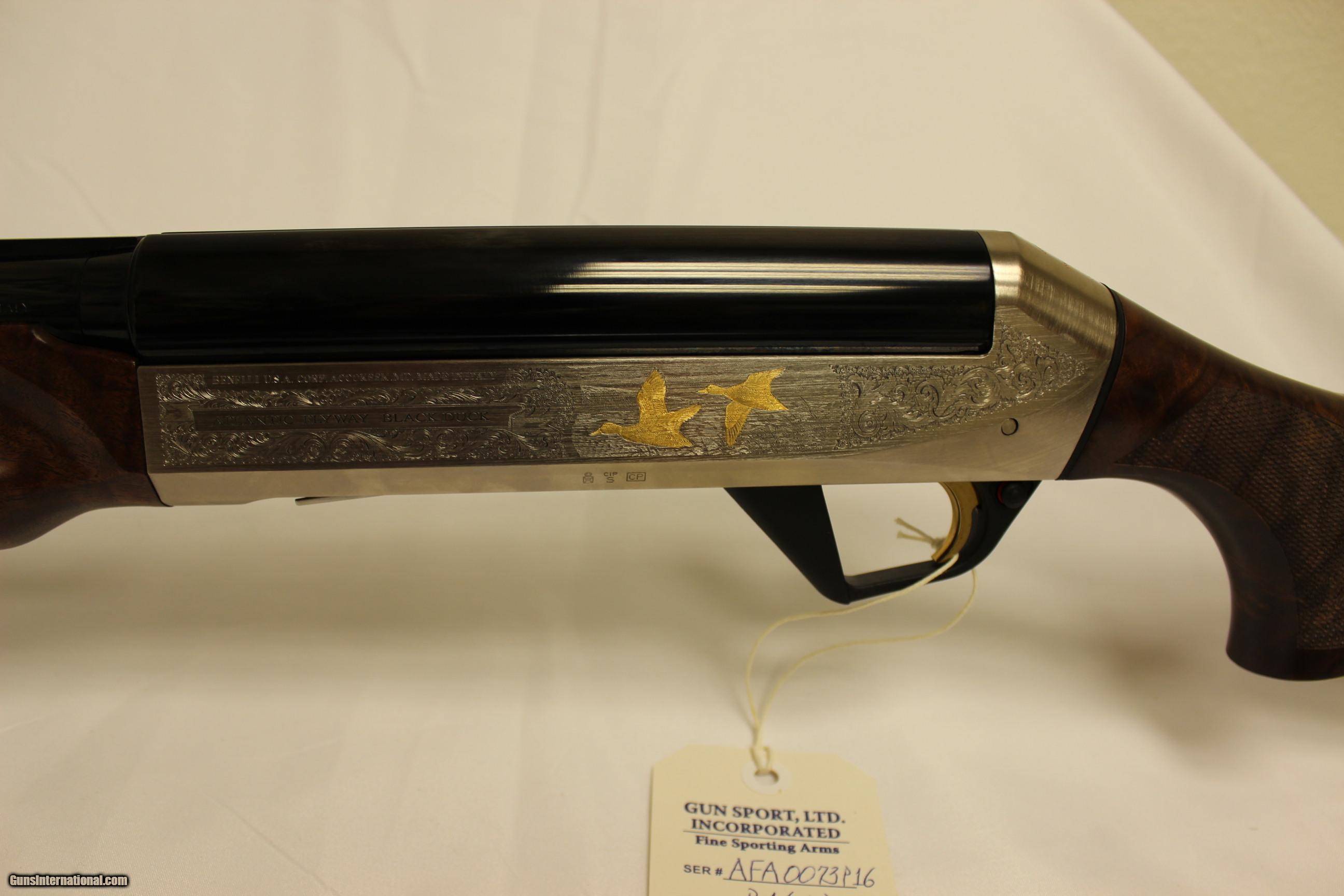Description: This is a beautiful set of four Shotguns that anyone would be proud to own. It's a Benelli 25th Anniversary Fly away commemorative set with matching serial number, there were only 150 of these sets made. They are new in box have never been shot. SOLD |