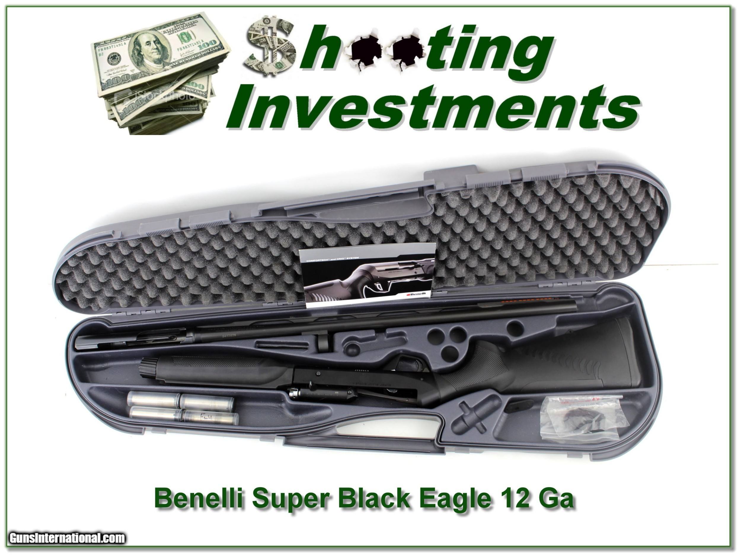 Description: This is a like new Benelli Super Black Eagle II 12 Gauge. I has a 26in VR barrel with 5 choke tubes and papers. I am sure only a few shells fired, and I see no marks on metal or stocks. I am selling this one on consignment and as such lay-a-way can’t be used. It does of course have the standard 3-day inspection. Shipping with insurance is $39. Please email me with any questions or larger pictures. (Consign your quality firearms with Shooting Investments for only 12%! Let me know if you have any you would like to sell!) 20-0077 Payment: Payment is by Money Order, Cashiers Check or Personal Check. I can now also accept Credit Cards (MasterCard, Visa, Discover & American Express) with a 3% convenience fee. PayPal can be used for some items but never for firearms. Shipping: The shipping charge will be listed in each description. It is $39 for most firearms. Some heavy guns or those insured for over $2000 will be higher. Shipments to Alaska and Hawaii are higher because air shipment is required. Most firearms are shipped on Tuesday and Thursday and usually in 5 days of receipt of payment. We package all shipments carefully and insure them. Optics are shipped Priority Mail and most other non-firearm shipments are shipped First Class. Returns: Our return policy is simple. If for any reason you are not pleased with your purchase, you may return your item for a full refund of purchase price. Ammunition cannot be returned. It is important to us that you are happy. Guns cannot be fired or dissembled before returning them and they must be returned in the same condition as received. Notification of a return must occur with-in 3 days of receipt at your dealer. Shipping, convenience and dealer fees are not refundable and are the responsibility of the buyer. Lay-a-way: If needed, we offer a 60 day lay-a-way option on most firearms. It is 1/3 now, 1/3 in 30 days and 1/3 in 60 days. Lay-a-way firearm sales are final and if not completed the first payment cannot be returned. Consigning your firearms with Shooting Investments: We will help you get top dollar for your firearms. While most local guns shops charge 20% or more, our fee is only 12% with a minimum of $75. At your local gun shop it might take months to sell. Selling on-line provides instant access to thousands of interested buyers. You won’t find any other on-line dealer willing to sell your firearms for only 12% or listing every gun on 3 separate s. Selling through an House typically costs the seller 15% and the buyer an addition 15% (so 30%) and you have to wait several months to sell and longer to receive funds. If properly priced, we will sell your firearms in a few weeks. Send us an email or give us a call and we’ll explain how easy it is for you to get top dollar. Trading: Trading for use is really just buying your gun to re-sell. If you have a gun you want to trade, please email a picture and we will let you know what we can give or it. You will always get more if we sell it for you on consignment. Help for California Buyers: We are happy to ship to California. It is the buyer’s responsibility to make sure any item you buy is legal in your state. We are also happy to help with your purchase of a firearm from someone other than us. If you see a gun you would like to buy but the seller can’t or won’t ship to California they can ship to use and we’ll then ship it to your California dealer. The cost for this service is only $30 + shipping. Let us know if we can help! SOLD |