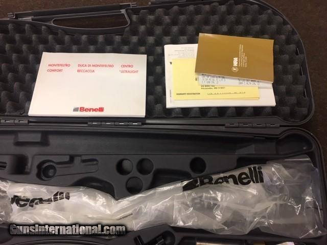 Description: 26 INCH BARRELED BENELLI 12GA ULTRA LIGHT, LOP 14 1.2 TO KICK EEZE PAD, 3 ORIGINAL CHOKES, MOD,IC,CYL, AND EXTENDED PORTED PURE GOLD MOD STEEL CHOKE. ORIGINAL HARD CASE AND PAPERS, STOCK SHIMS, CHOKE TUBE WRENCH, WOOD HAS A COUPLE VERY MINOR DINGS. 6 LBS BY MY SCALE. SOLD |