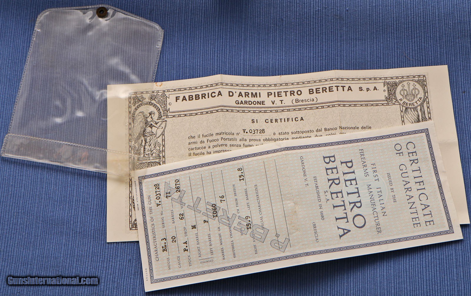 Description: 1970 - Beretta - BL-3 (S55) - 20ga - 28" 3" M / F (.014 / .029), Vent Rib, Extractors, Automatic Safety, Single Selectiver Trigger, LOP 14-1/4", Drop 1-1/2" to 2-3/8", Neutral Cast, Weight 5 lbs. 14 oz. Like New Condition! Tight and Crisp. A couple of tiny handling marks on the stocks.