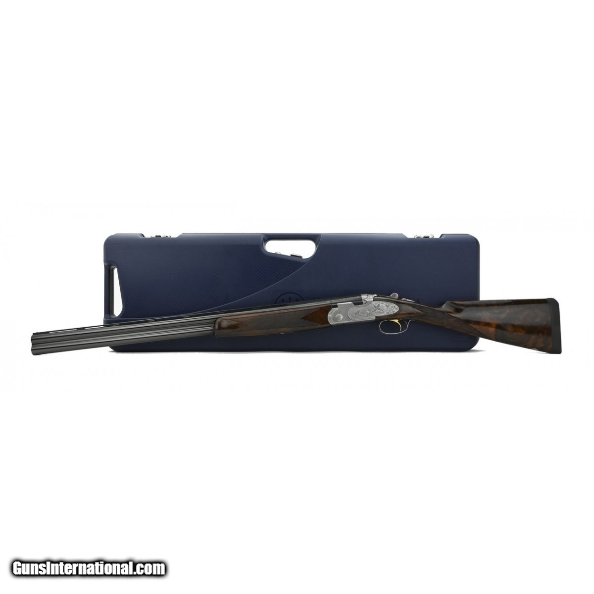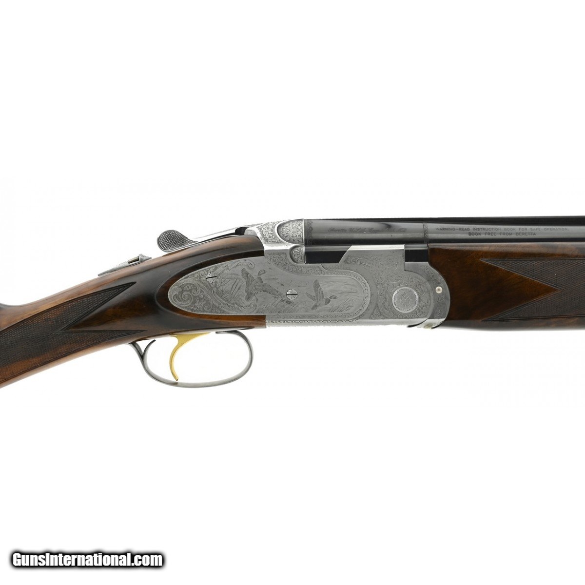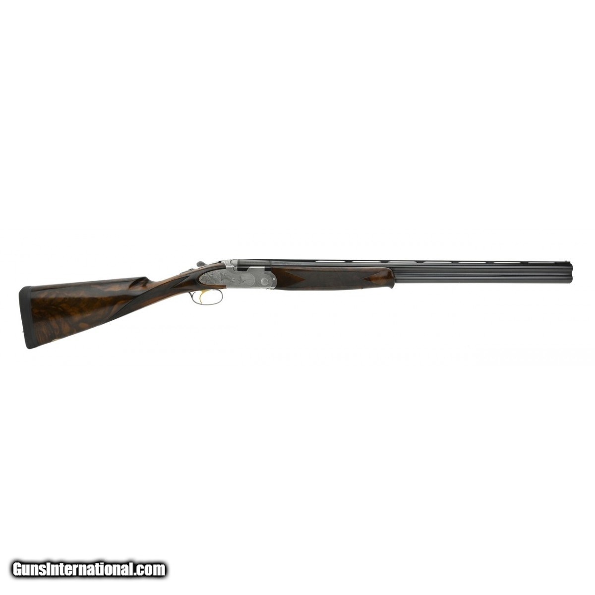 Description: " Beretta 687 Extra 12 gauge shotgun. Premiun grade over/under field gun. Has 28" barrels, elaborately engraved side plates and a straight stock of higly figured Walnut. LOP is 13 5/8". The gun is in near excellent condition with a few light marks. Has a set of Briley 20 gauge ultra-light tubes. With case.