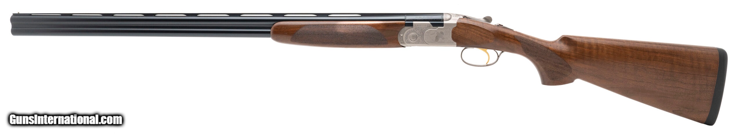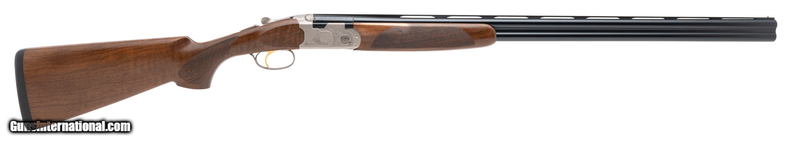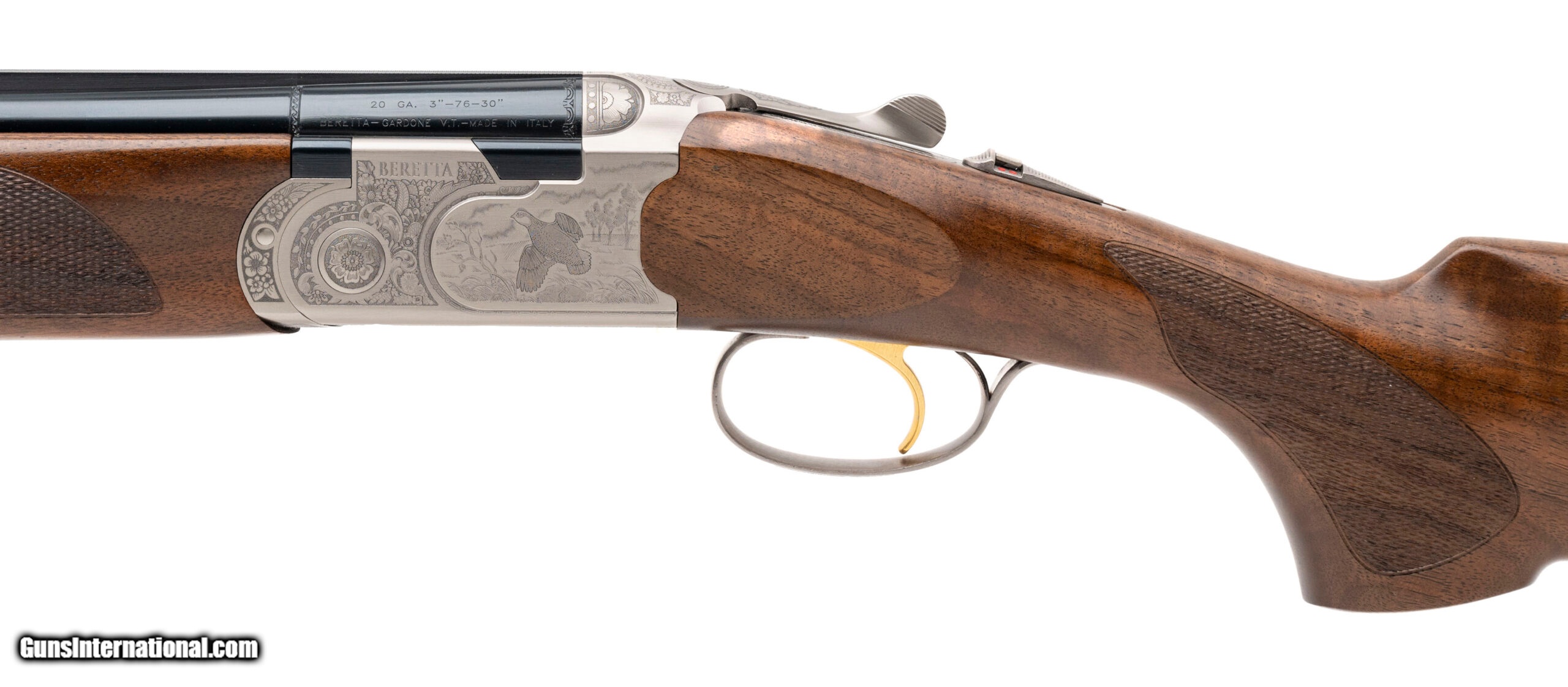 Description: "SN: F77794X. Modern production, 20 Gauge with 30"" vent rib barrels with removable chokes. Bores are in excellent condition. Over/Under action field shotgun with engraved receiver. Finish and checkered wood stock are in excellent condition. Has a 14.75"" LOP. Comes with case and extra chokes. SOLD |