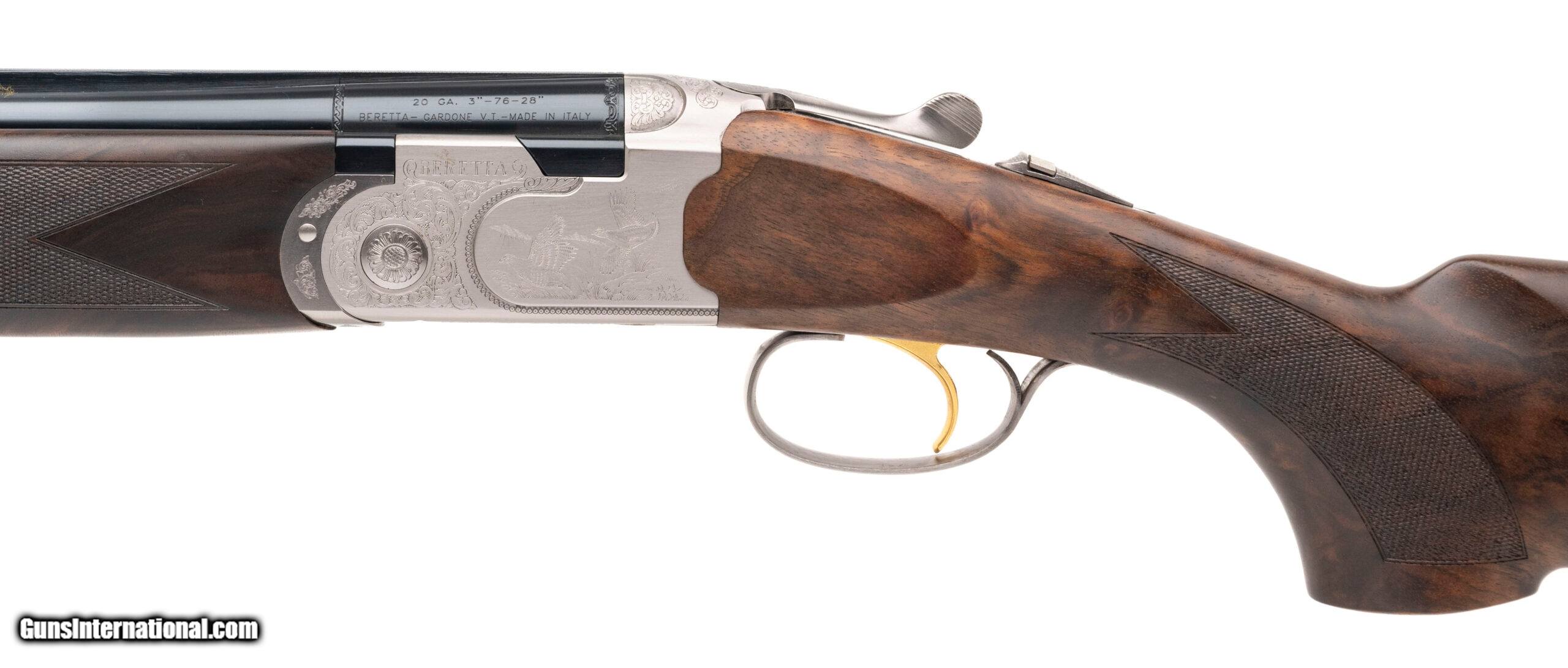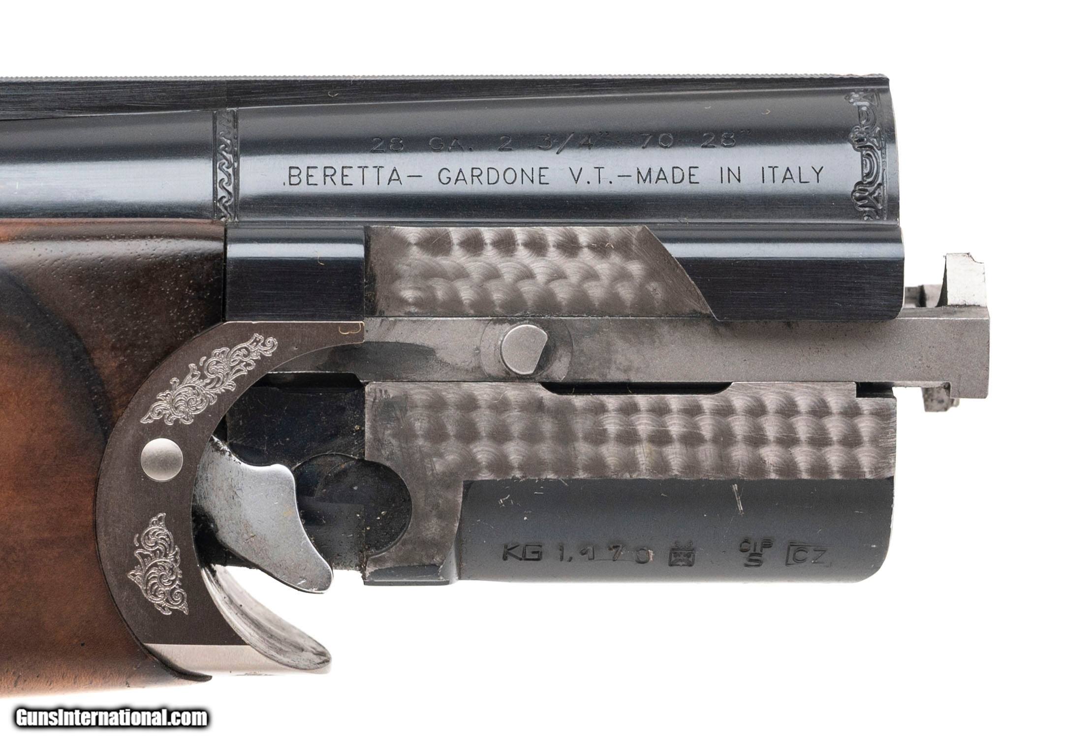 Description: "SN: JE5966 modern production made in Italy for Joel Etchen Guns. Over under field shotgun with 2 vent rib barrels and 2 forearms, 20 gauge 28"" with 3"" chambers and 28 gauge 28"" with 2 3/4"" chambers, both barrels have screw in chokes. Box lock with ejectors, selective gold plated single trigger and automatic safety. Nicely figured checkered walnut furniture with a gold stock oval and 14.5"" LOP to the Beretta rubber recoil pad. Some light handling marks on the furniture, metal finish and bores are in excellent condition. Comes with Negrini case and extra chokes. Price: $3,995.00 Contact Seller |