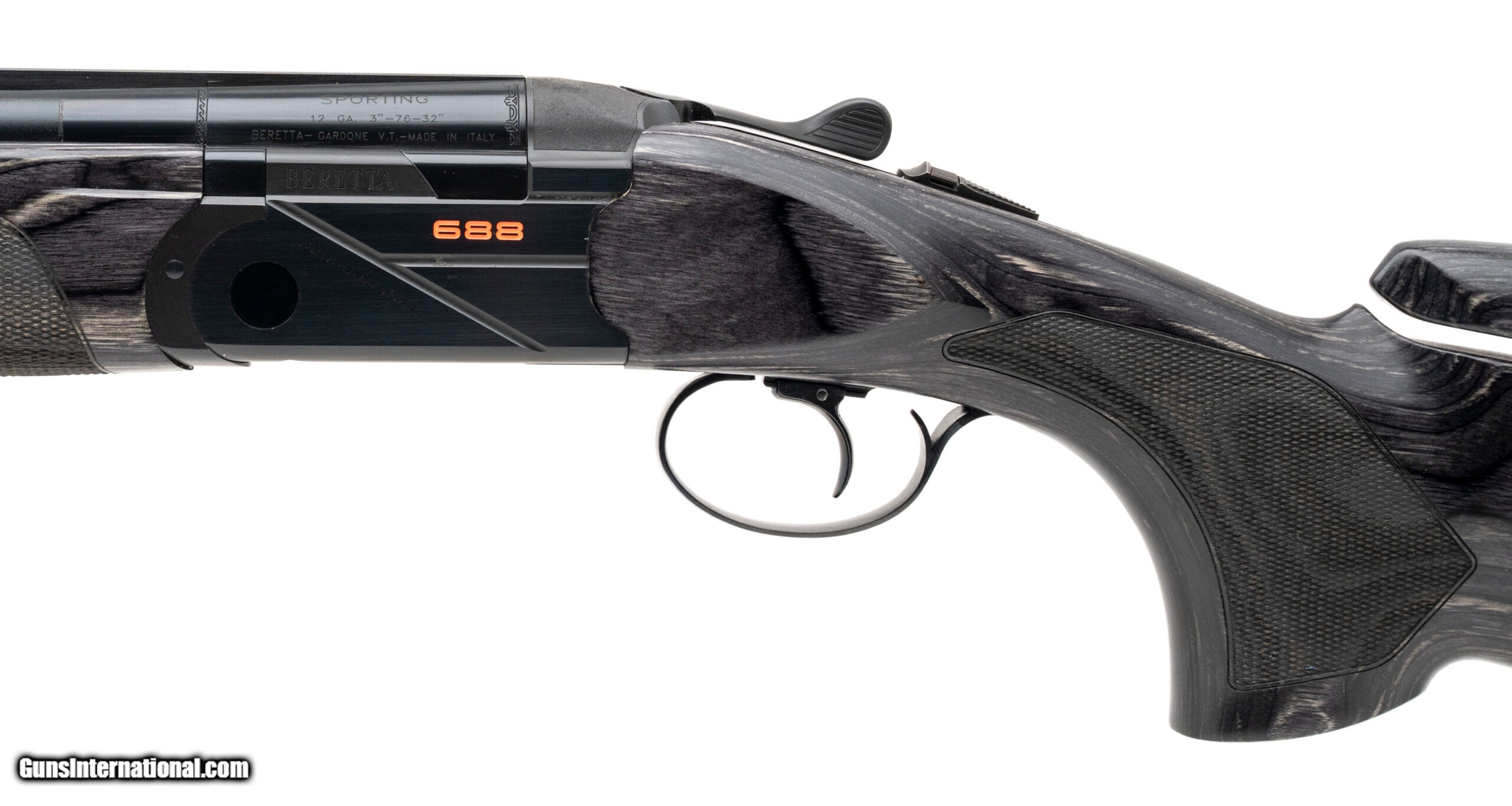 Description: "Over/Under Sporting Shotgun with 32"" Vent Rib Barrels and 3"" Chamber. 14.75"" LOP, Adjustable Comb & Heel, Ambidextrous Palm Swell, Screw in Chokes, Black Laminate Wood Stock, and Blued Finish. NEW. UPC: 082442989624 (STOCK PHOTO) SOLD |