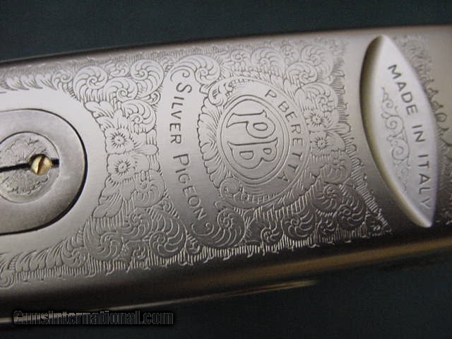 Description: 4888 Beretta Silver Pigeon 20 gauge 26 inch barrels mod full chokes, vent rib, ejectors, lever to right, coin silver receiver, this is the good one made before the Silver Pigeon I. 98% condition, butt pad, front bead, bores brite and shiny. SOLD |