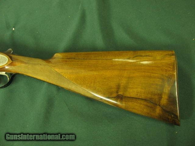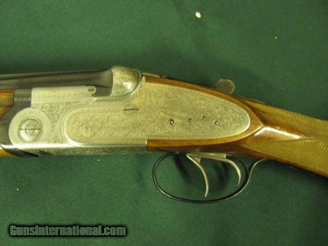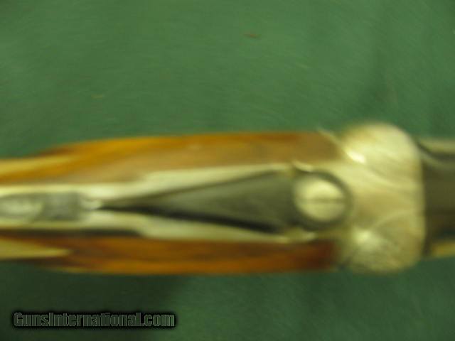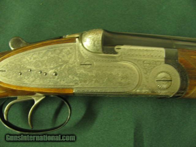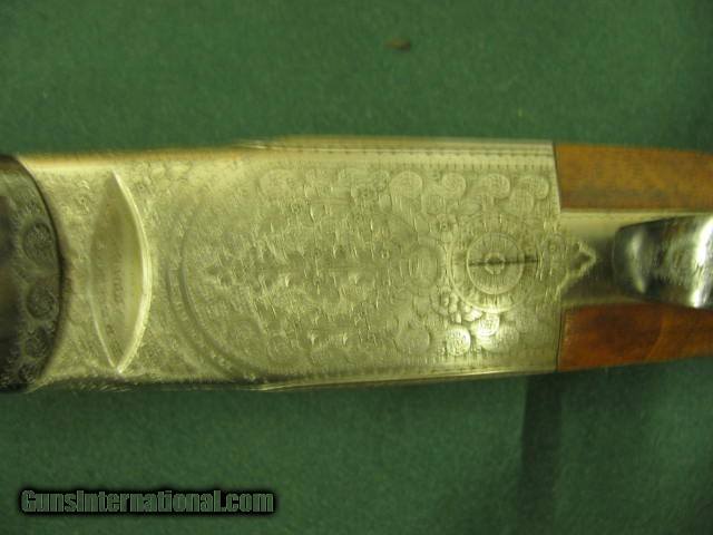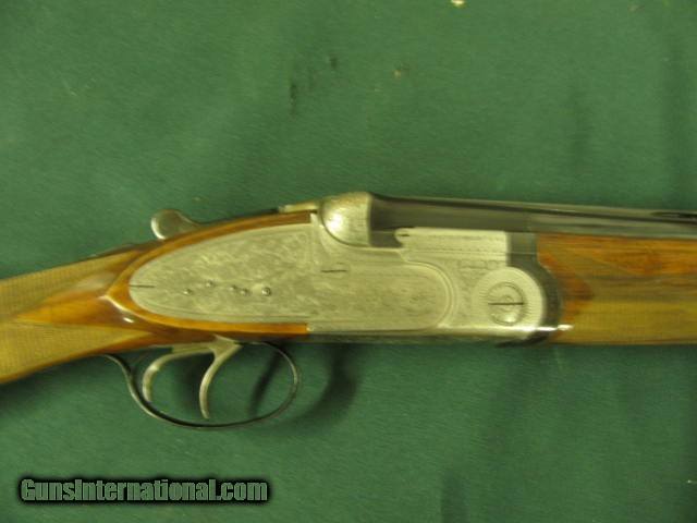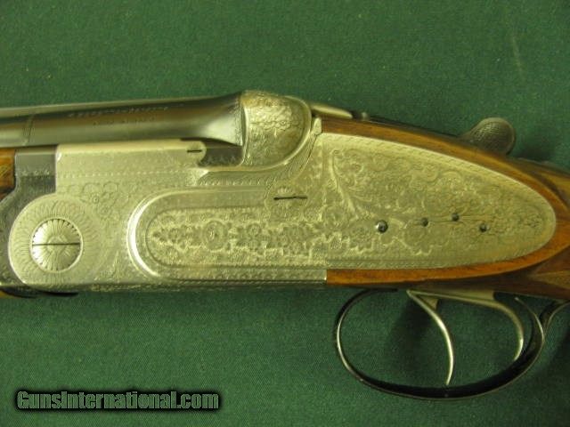 Description: 6523 Beretta S03 12 gauge 28 inch barrels mod/full, STRAIGHT GRIP, sideplates, rose and scroll engraving, checkered butt, double triggers, ejectors, vent rib 1961 mfg, 98% condition, A+Walnut. opens closes tite, bores brite/shiny SOLD |