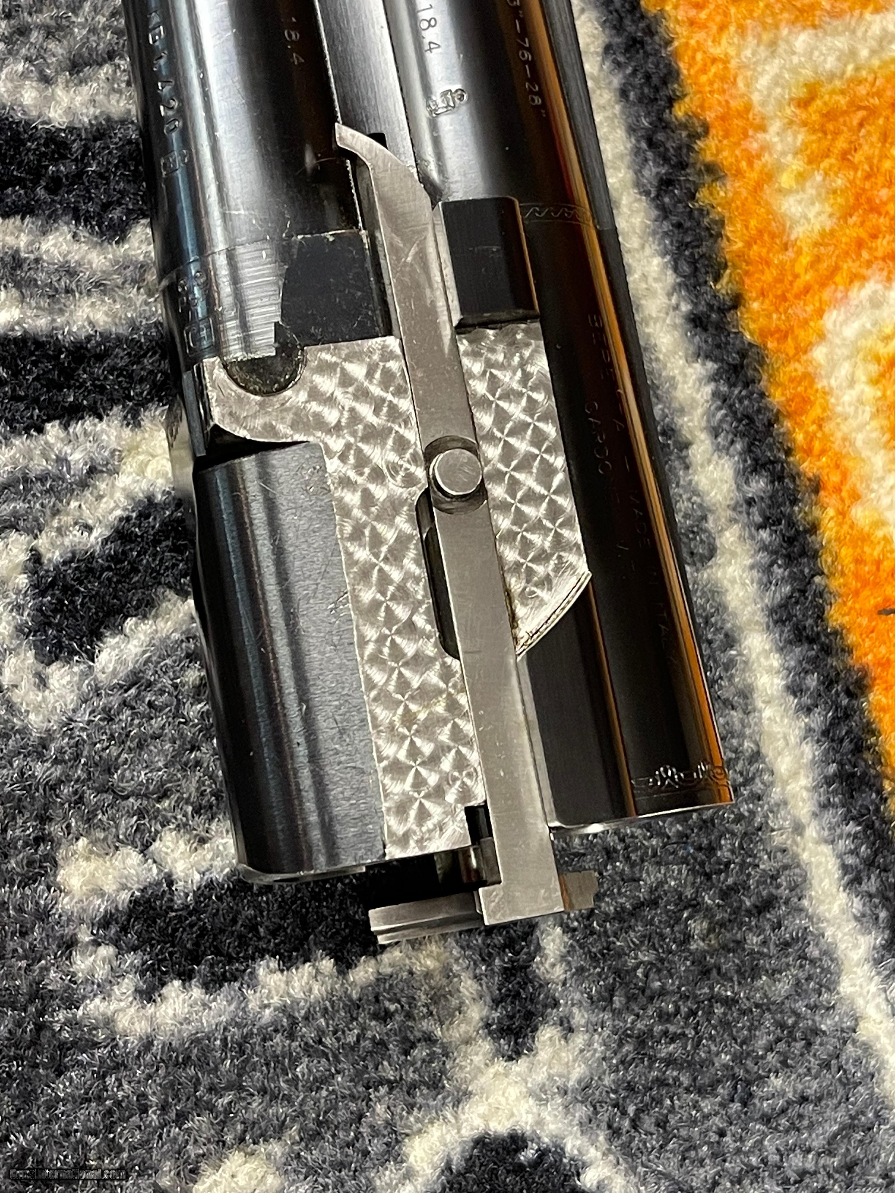 Description: This Beretta Silver Pigeon I is in like new condition! We brought it in from a customer that purchased it new and never fired it. There are NO handling marks, however the bottom of the case has a few scratches. There is a small spot on the rib, not rust, it is dis-colored (showen in the pictures) Comes with 5 factory flush mount chokes (Cyl, IC, Mod, IM, Full) SOLD Shotgun Gauge: 12 Gauge Manufacturer: Beretta Model: Silver Pigeon I Serial Number: V34997S Bore: 12ga Chambers: 3 Ejectors: Auto Condition: Excellent / Like New Metal Condition: Excellent / Like New Wood Condition: Excellent / Like New Bore Condition: Excellent / Like New |
