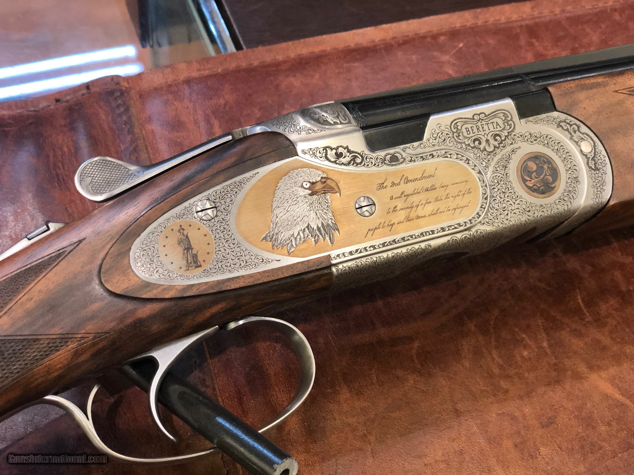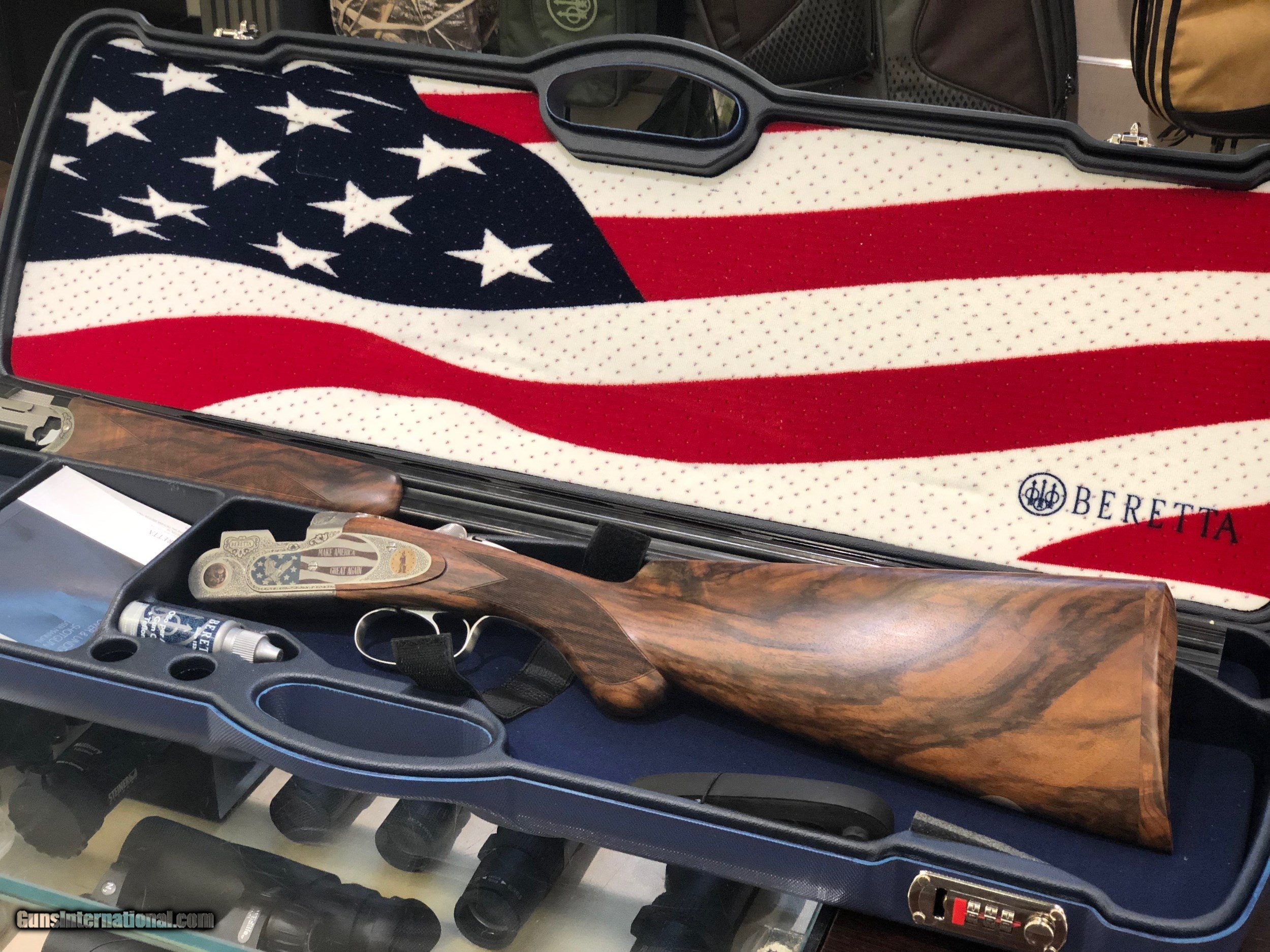 Description: To celebrate the Trump presidency and the preservation of our 2nd amendment rights Beretta has produced 25 of these shotguns. This is a 20ga 30" 687 EELL, comes along with a American flag embroidered custom case. Only 25 of these have ever or wil ever be produced. This is the last remaining one of these up for sale not in private collectors hands. Comes with a full set of chokes and the case pictured in the photos. Call or email today to get this piece of American History. 214-559-9800 Disclaimer: There is a small defect in the gold medallion on the right side of the reciever. SOLD Manufacturer: Beretta Model: 687 EELL 2nd Amendment Edition Serial Number: 2AM18T Condition: NIB Barrels: 30 Gauge Info: 20ga |
