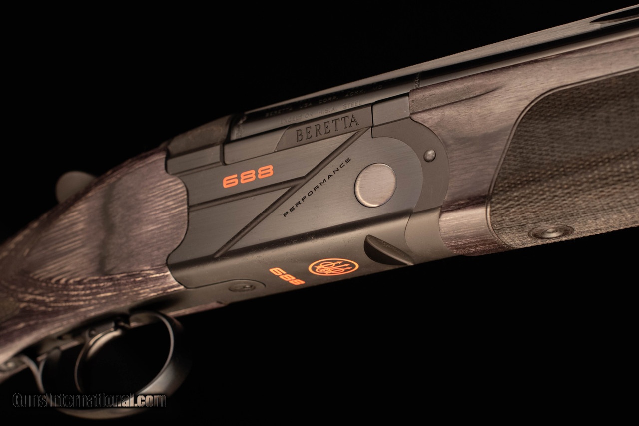 THE BERETTA 688 PERFORMANCE SPORTING is not just a new name and model but completely different from its predecessor, the legendary 686 Sporting. The new Beretta 688 Performance is packed with features that give the shooter advantages over the competition. The laminated stock and forend give the shotgun a stylish and modern look. The adjustable B-Fast stock gives the shooter adjustability for a precision fit, allowing for reduced recoil and comfort, while the ambidextrous palm swell gives the shooter more control.