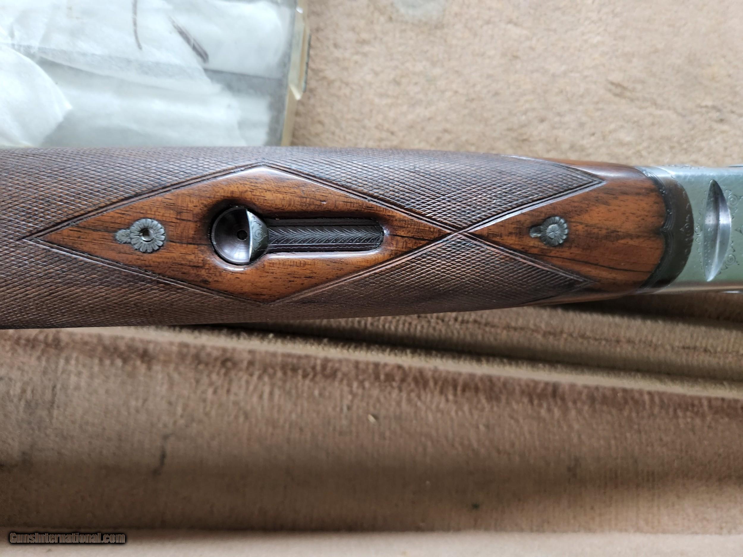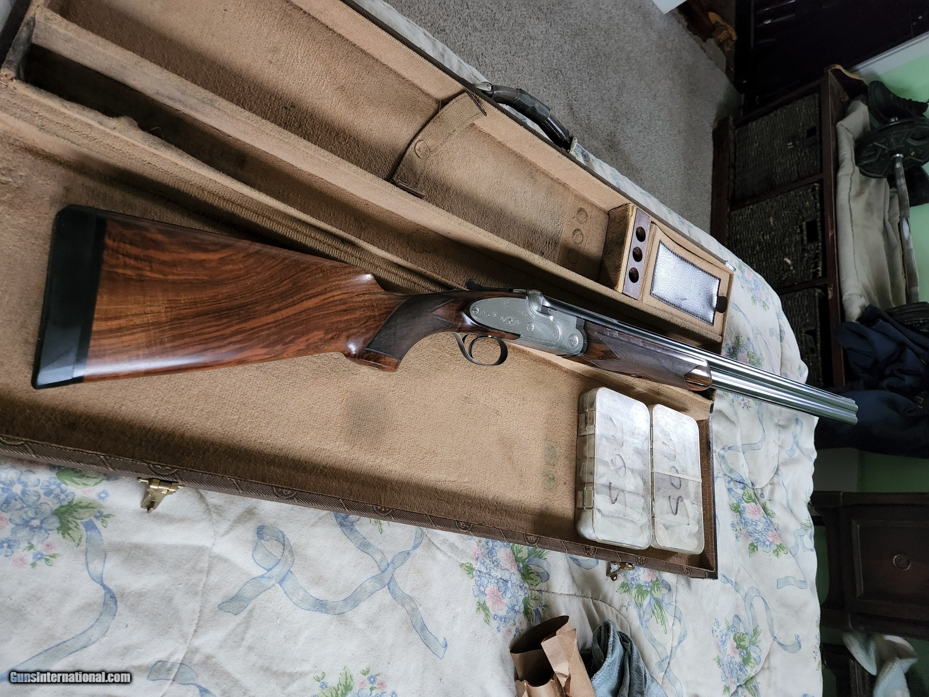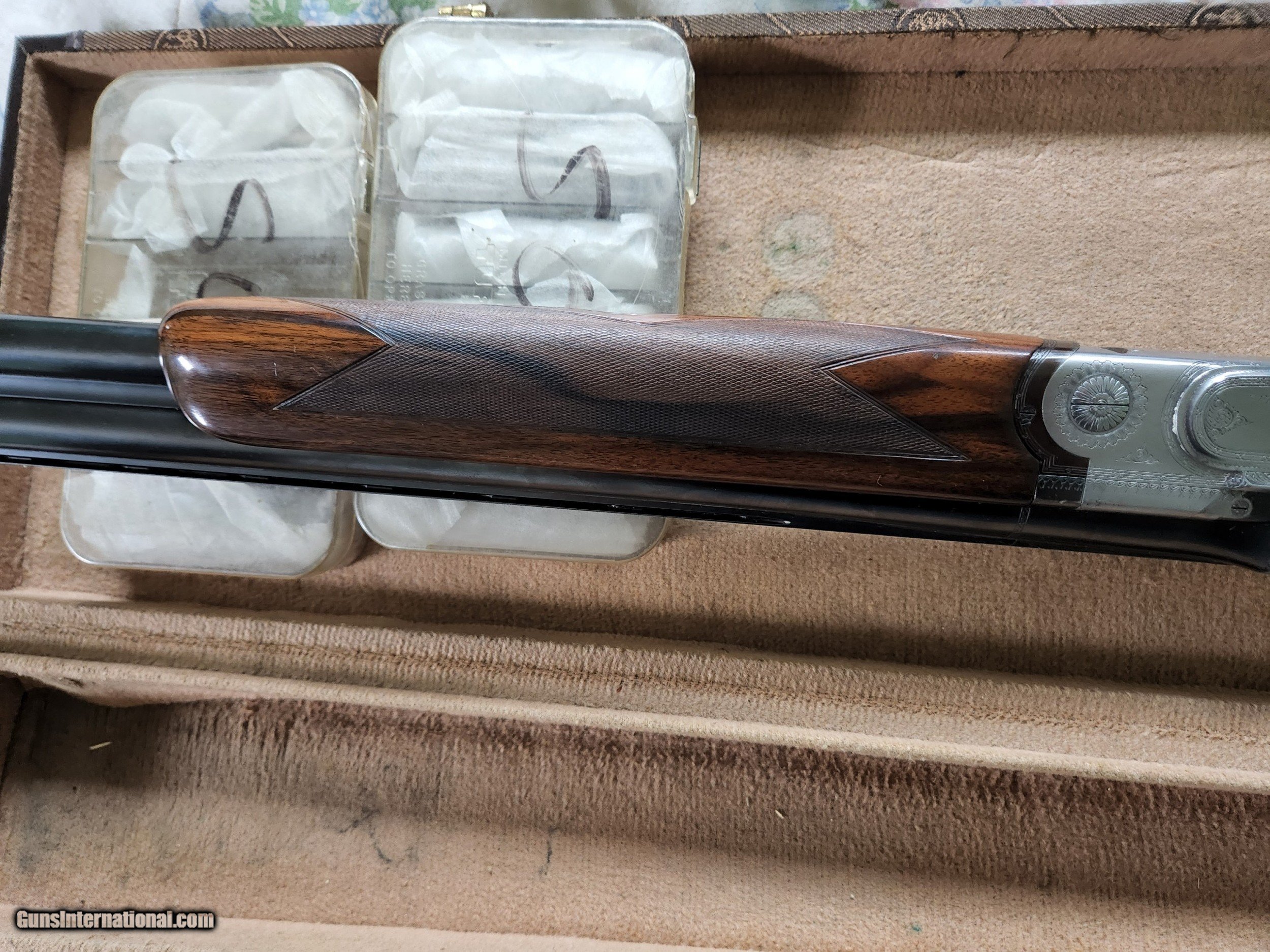 Description: Beretta 12 ga so4 true side look cross bolt was trap convert to sporting great shape 29 7/8 barrels 12 thin wall chokes makers case ,case a little rough overall great shape perfect bores 2 3/4 chambers forend had a repaire done professionally tight as a drum LOP is standard 14 1/4 to end of pad as with most shot guns SOLD Shotgun Gauge: 12 Gauge Manufacturer: Beretta Model: So4 Serial Number: A00918 b Barrel Length: 29 7/8 Bore: Perfect Chambers: 2 3/4 Ejectors: Yes Condition: Very good Metal Condition: Very good Wood Condition: Very good Bore Condition: Perfect Barrels: 29 7/8 Barrel Type: Fluid Action: Side lock cross bolt Triggers: Single Stock: Wood Stock Dimensions: 14 1/4 Stock Comb: 1 3/8 Stock Heel: 2 1/8 Stock Cast: Right hand slight Fore End: Wood Butt Pad: Rubber LOP: 14 1/4 Rib: Low vented Finish: Blued and nickel Sights: Brass Engraving: Yes Item Location: Oregon Proof:Nitro: Yes |