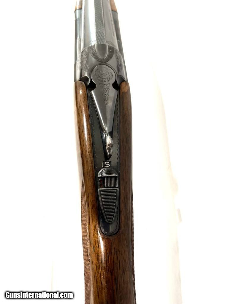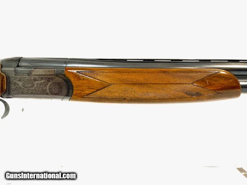 Description: This shotgun is a used firearm in good condition. It has a gloss finished wood stock with checkering showing light handling marks and slight loss of gloss finish on the right side near the receiver (see photo). The receiver and 26” barrels are in very good condition, chambered for 2 ¾” shells. The receiver shows a higher grade of engravings than the BL 2 version. The gun has a vent rib, gold colored trigger, barrels have fixed modified and improved permanent chokes, and has a Beretta pistol grip cap. The selector switch is on top of the thumb safety. This gun is in good condition and tight action. * Shipping, handling and insurance to be determined. SOLD Shotgun Gauge: 12 Gauge Manufacturer: Beretta Model: Beretta 12ga O/U BL-3 1968-1996 Barrel Length: 26 Chambers: 2 3/4 Condition: Good Metal Condition: Very good Wood Condition: Good - Bore Condition: Very Good Action: O/U Triggers: Gold single reigger Stock: Gloss finished wood stock with checkering. Fore End: Checkered Fore End Butt Pad: Beretta hard Butt Pad Rib: Vent Rib Weight: 6.6 lbs Sights: Front steel bead sight Chokes: Barrels have fixed modified and improved permanent chokes Engraving: The receiver shows a higher grade of engravings than the BL 2 version |