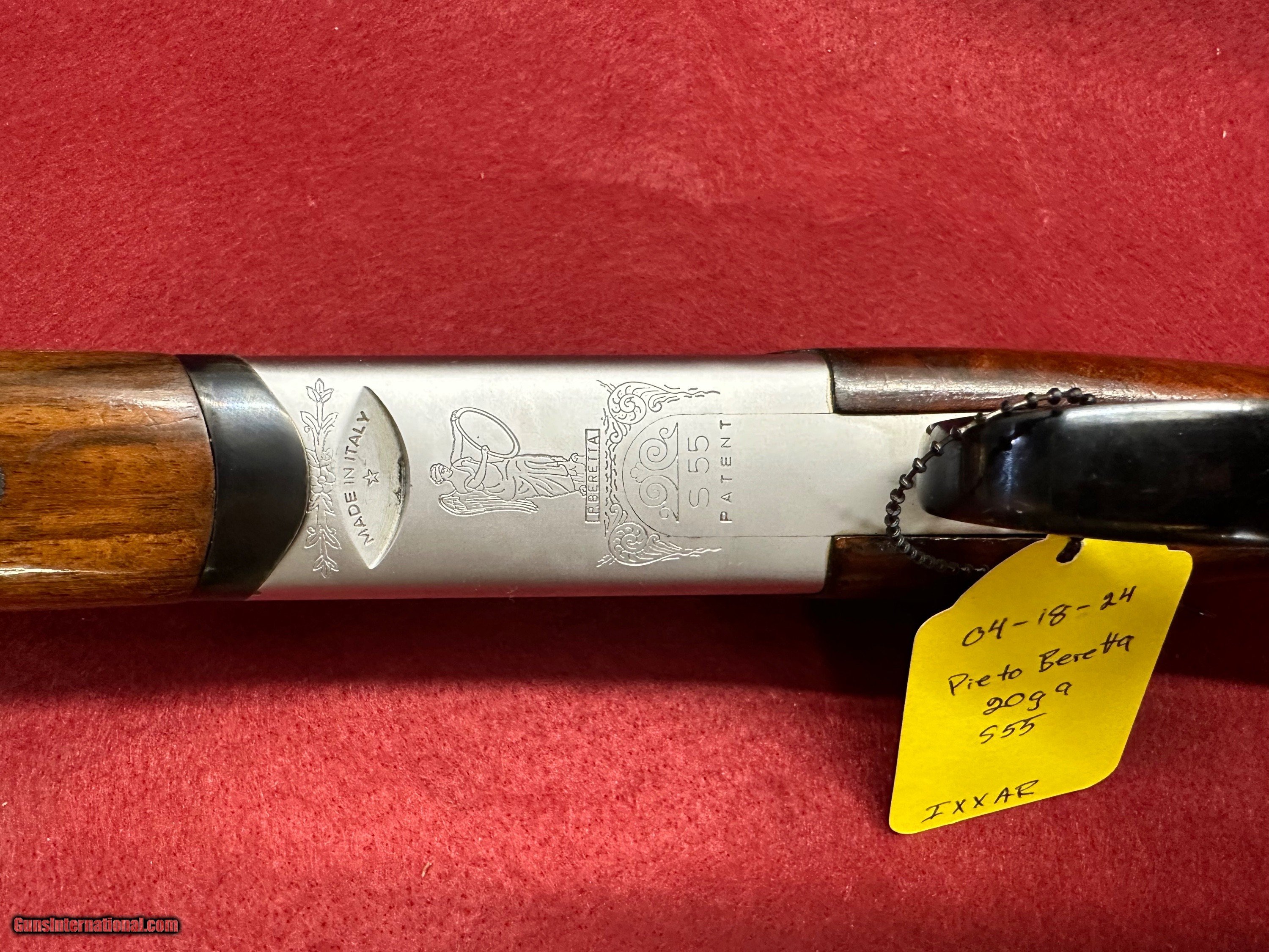 Description: Beretta OU 20 ga S55 Shotgun. Mirror bores. Stock has some dings and dents. Barrels have no dents. some light freckling on the right side by the hand guard shown in the pictures. Locks up very tight. Great upland bird gun. Price includess all CC Fees Flat 35.00 shipping SOLD Shotgun Gauge: 20 Gauge Manufacturer: Beretta Model: S55 Barrel Length: 26 3/8 Condition: Good Metal Condition: Good Wood Condition: Good Bore Condition: very good Action: OU Chokes: Fixed Choke Left: Top Modified Choke Right: Bott Cyl Item Location: Buxton Maine |