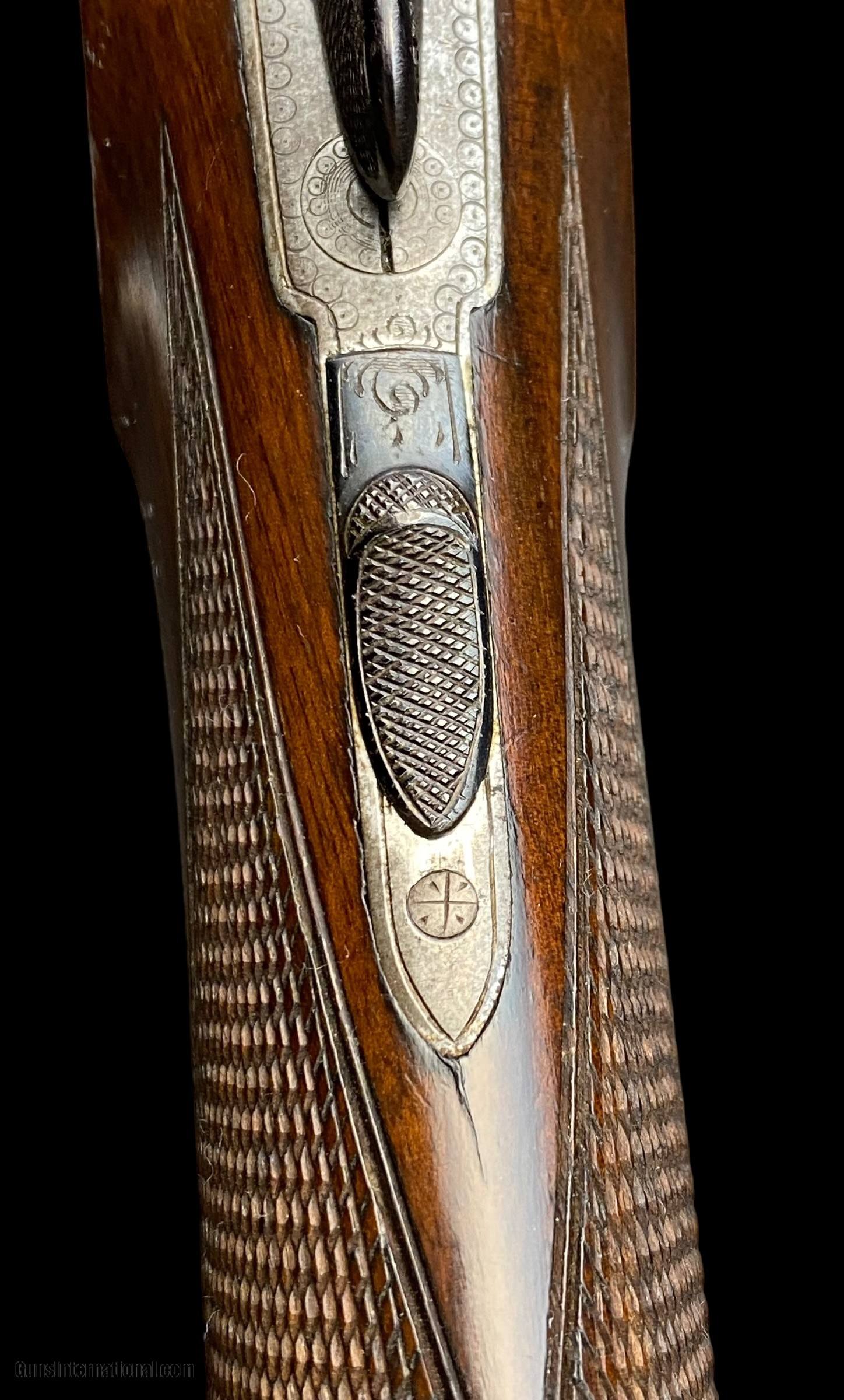 Description: BERETTA - ITALY MODEL: ASE O/U GAME GUN MADE 1960 20 GA - 2.75" DOUBLE TRIGGERS - EJECTORS 28" BBLS CHOKED MOD/FULL STRAIGHT GRIP STOCK W/ BERETTA CHECKERED BUTTPLATE - 14.25" LOP X 1.375" DAC X 2.125" DAH - SLING SWIVELS AS FACTORY MADE WEIGHT 5LBS 14OZ CONDITION: EXCELLENT OVERALL CONDITION. ORIGINAL LUSTROUS BLUE REMAINS. THE STOCK OIL FINISH IS EXCELLENT. VERY SMALL STRESS CRACK BEHIND TOP TANG - APPEARS STABLE AND AGED (AS PICTURED). TRIGGERS CRISP EJECTORS ARE STRONG AND IN-TIME GENTLEMEN - THIS IS A LOVELY LIGHTWEIGHT GAME GUN THAT HAS GREAT DIMENSIONS AND IS A PLEASURE TO SHOULDER. PERFECT FOR THE QUAIL OR PHEASANT FIELDS! NICE LITTLE GUN! FFL REQUIRED (C&R OKAY) FLAT $50 S/H/I CREDIT CARD FEE APPLIES SOLD Curio/Relic: Yes Shotgun Gauge: 20 Gauge Manufacturer: BERETTA Model: ASE Serial Number: 25659 Chambers: 2.75 Ejectors: YES Condition: EXC Metal Condition: EXC Wood Condition: EXC Bore Condition: EXC Triggers: DOUBLE Proof:Nitro: YES |