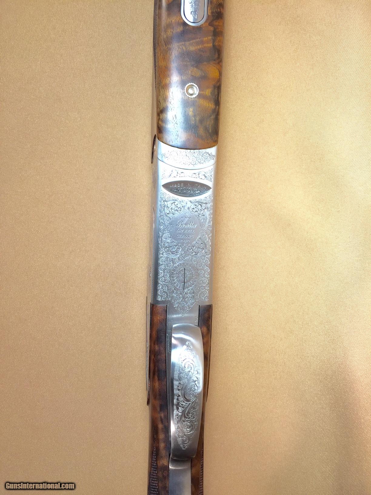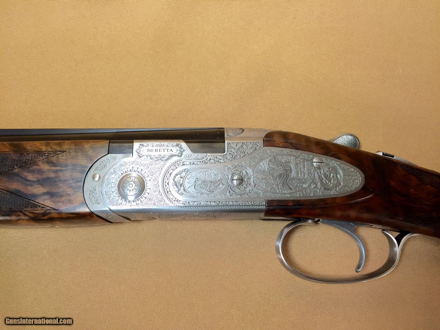 Description: A special shotgun that is handsomely engraved and complimented by stunning wood. Like new. 2 3/4" chambers with three screw-in chokes F, IM, M. Auto ejectors and safety. Selective trigger. 28" barrels. LOP 14 1/2" drop at comb 1 1/4" drop at heel 2" 0 cast. Comes with Beretta hard case. SOLD |