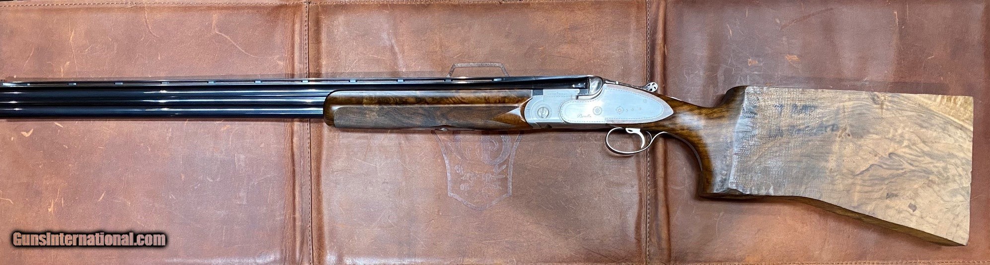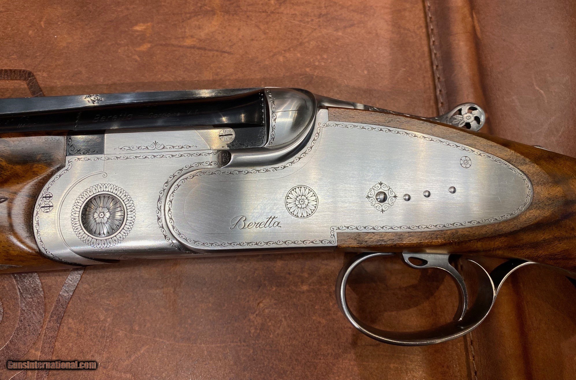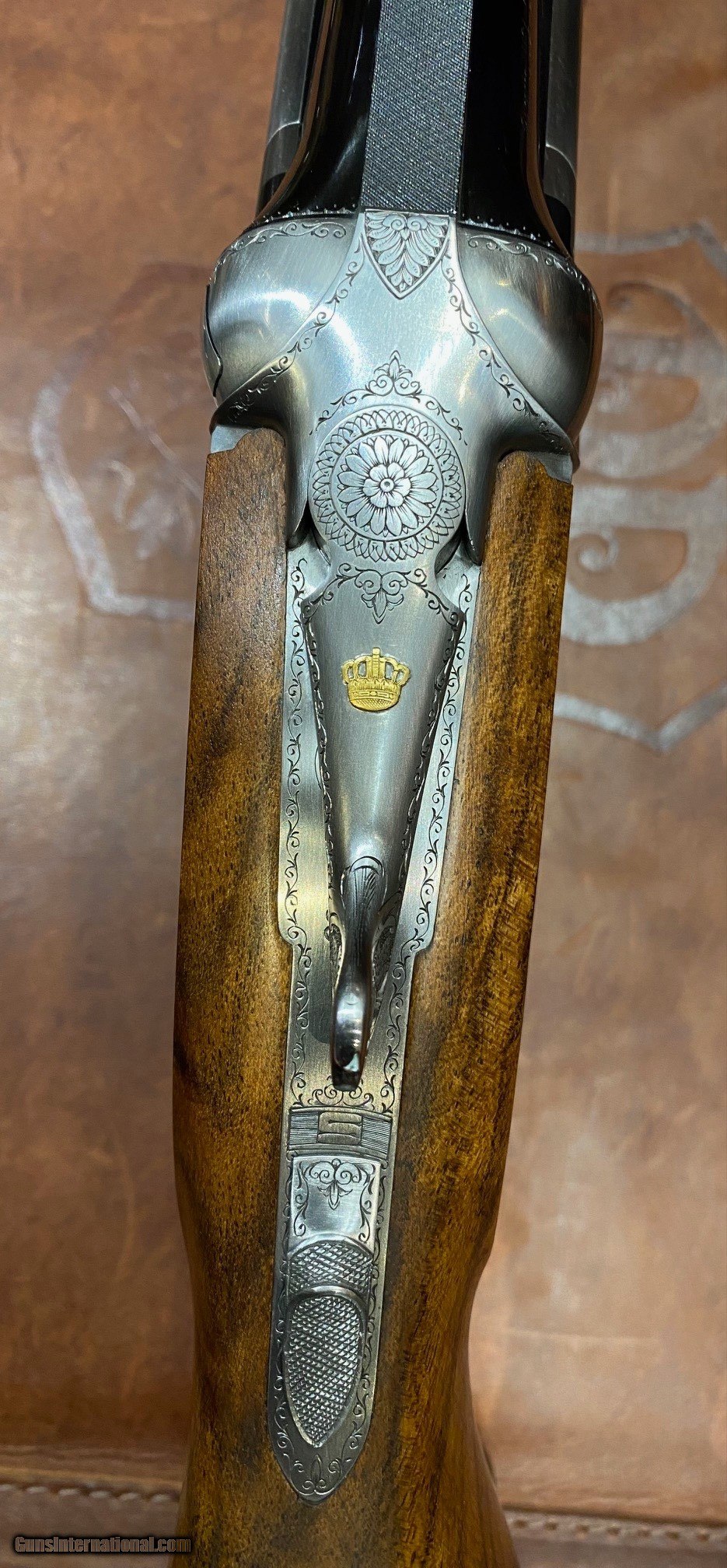 Description: Beretta 30" International Trap with Headed Stock and Fixed Chokes: Upper barrel is Full; Lower barrel is Improved Modified Description The best competition shooters in the world choose the best shotguns in the world: and with five gold medals in five different Olympics and countless awards in prestigious international competitions, champions consider the SO5 over-and-under the finest competition shotgun ever made. A premium gun in every respect, this SO5 is a sidelock Trap shotgun optimized for bringing clay shooters to the podium, also thanks to the ability to personalize it to the competitor’s individual measurements. The performance and reliability of these extraordinary guns is the result of the quality of materials used, individual craftsmanship and the precision of the manufacturing processes. Barrels are constructed of cold-forged, ensuring perfect alignment of the tubes, exceptional strength and long-lasting corrosion resistance. They are carefully tested and checked for ballistic performance and shot pattern. To minimize locking stress while shooting, the "cross-bolt" locking system operates on Monobloc lugs positioned at the height of the upper tube axis. The low-profile action body is exceptionally sleek to enhance swing and pointability in the heat of competition. The true sidelock design is simple and reliable, renowned for its extremely quick lock times and ultra-crisp trigger pull. The headed stock can be sized and dimensioned to the shooter's individual specifications. The side plates are beautifully hand engraved with a simple but elegant pattern and finished to Beretta’s extremely high standards. The floorplate is embellished with a 24-carat fine gold inlay of the “Beretta” signature on the coin silver finish. The gun comes complete with fitted leather carrying case. SOLD Shotgun Gauge: 12 Gauge Manufacturer: Beretta Model: SO5 Serial Number: C16655B Barrel Length: 30 Condition: New Stock: Headed Stock Dimensions: Custom Weight: TBD Chokes: Fixed Engraving: By Hand Case: Leather Item Location: Beretta Gallery NYC |