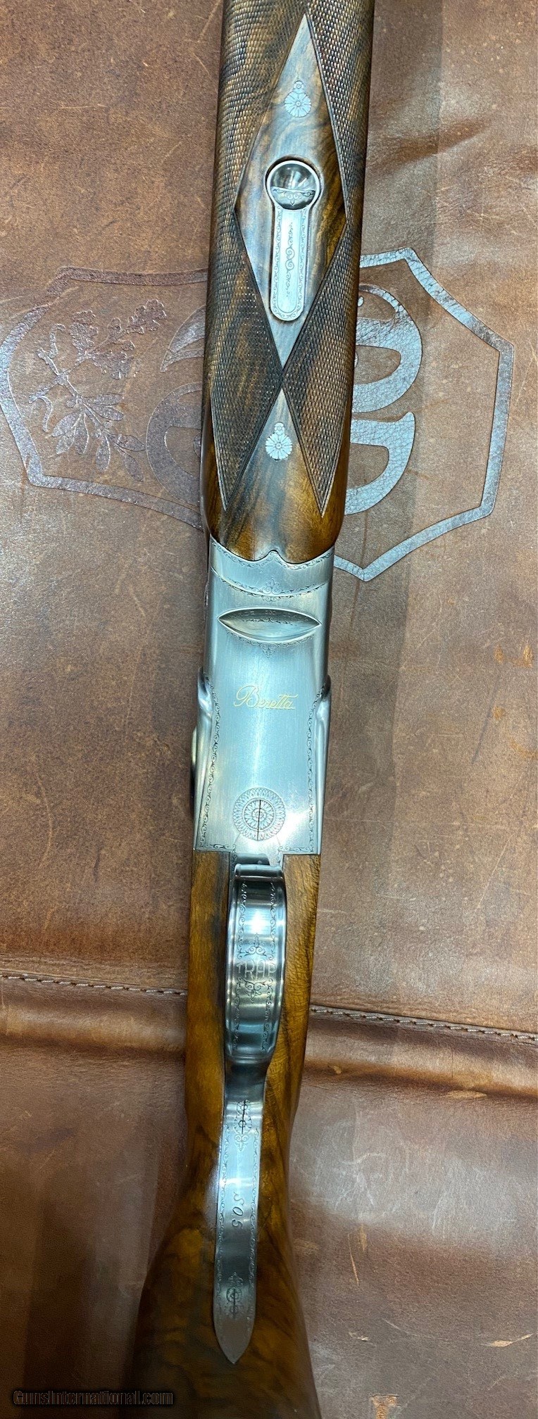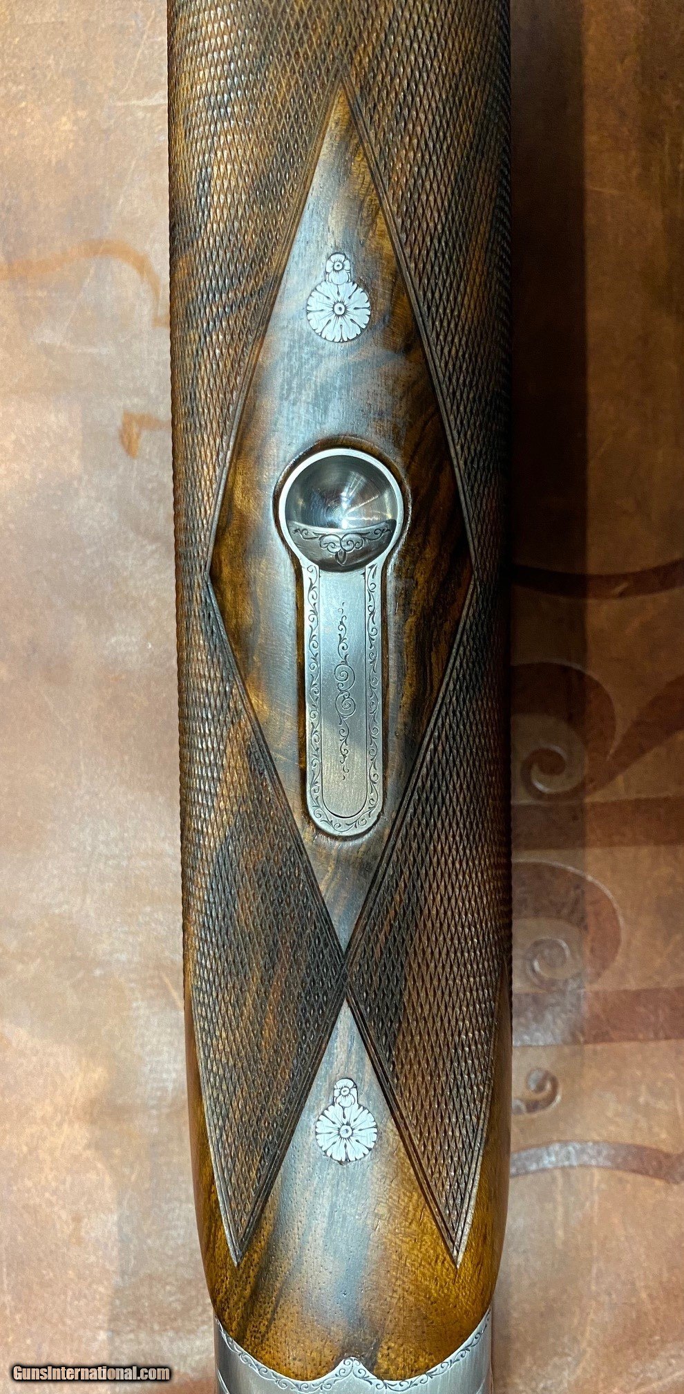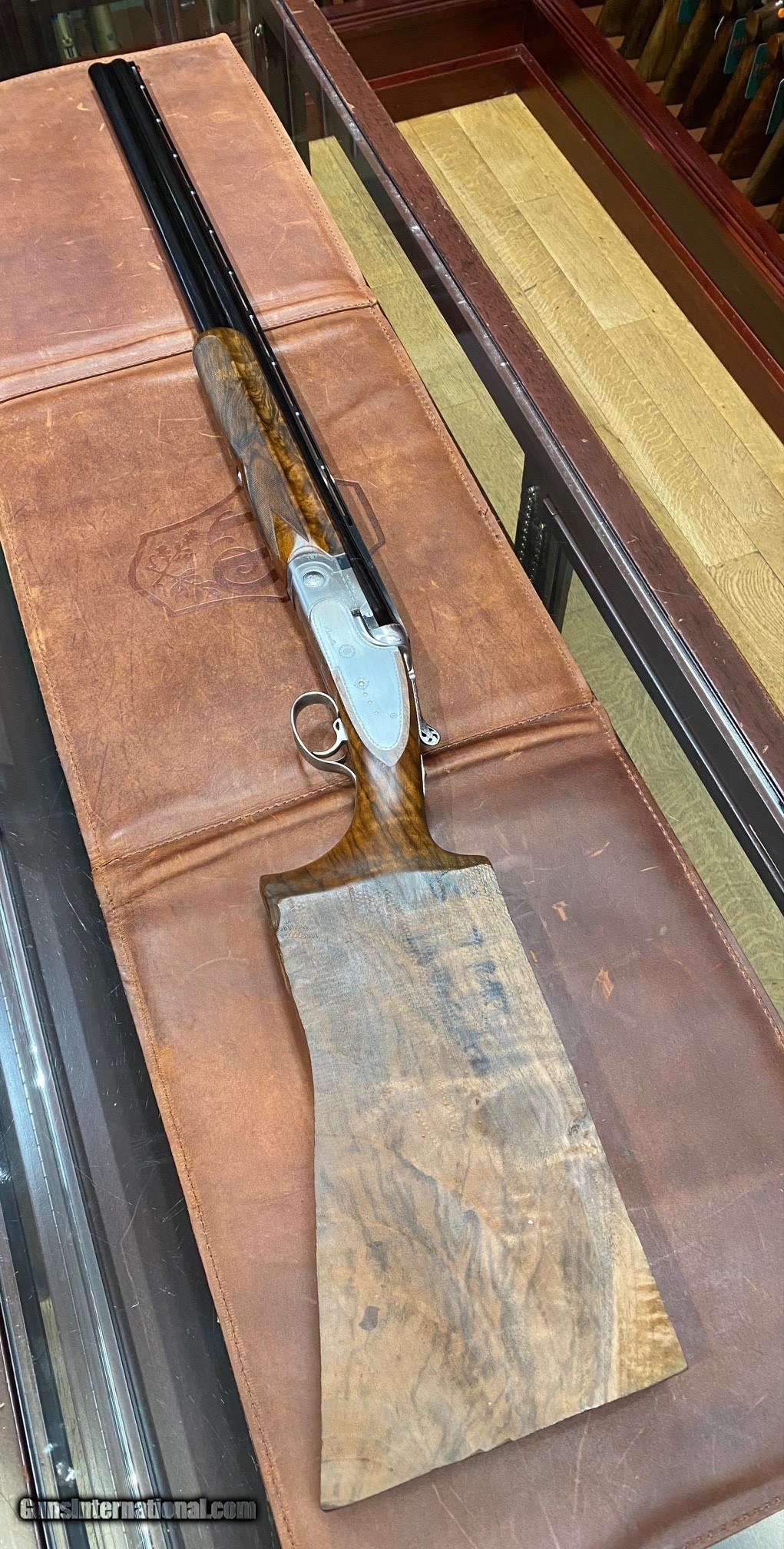 Description: Beretta 30" International Trap with Headed Stock and Fixed Chokes: Upper barrel is Full; Lower barrel is Improved Modified Description The best competition shooters in the world choose the best shotguns in the world: and with five gold medals in five different Olympics and countless awards in prestigious international competitions, champions consider the SO5 over-and-under the finest competition shotgun ever made. A premium gun in every respect, this SO5 is a sidelock Trap shotgun optimized for bringing clay shooters to the podium, also thanks to the ability to personalize it to the competitor’s individual measurements. The performance and reliability of these extraordinary guns is the result of the quality of materials used, individual craftsmanship and the precision of the manufacturing processes. Barrels are constructed of cold-forged, ensuring perfect alignment of the tubes, exceptional strength and long-lasting corrosion resistance. They are carefully tested and checked for ballistic performance and shot pattern. To minimize locking stress while shooting, the "cross-bolt" locking system operates on Monobloc lugs positioned at the height of the upper tube axis. The low-profile action body is exceptionally sleek to enhance swing and pointability in the heat of competition. The true sidelock design is simple and reliable, renowned for its extremely quick lock times and ultra-crisp trigger pull. The headed stock can be sized and dimensioned to the shooter's individual specifications. The side plates are beautifully hand engraved with a simple but elegant pattern and finished to Beretta’s extremely high standards. The floorplate is embellished with a 24-carat fine gold inlay of the “Beretta” signature on the coin silver finish. The gun comes complete with fitted leather carrying case. SOLD Shotgun Gauge: 12 Gauge Manufacturer: Beretta Model: SO5 Serial Number: C16655B Barrel Length: 30 Condition: New Stock: Headed Stock Dimensions: Custom Weight: TBD Chokes: Fixed Engraving: By Hand Case: Leather Item Location: Beretta Gallery NYC |