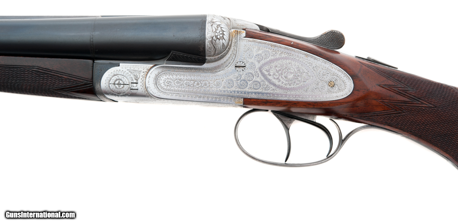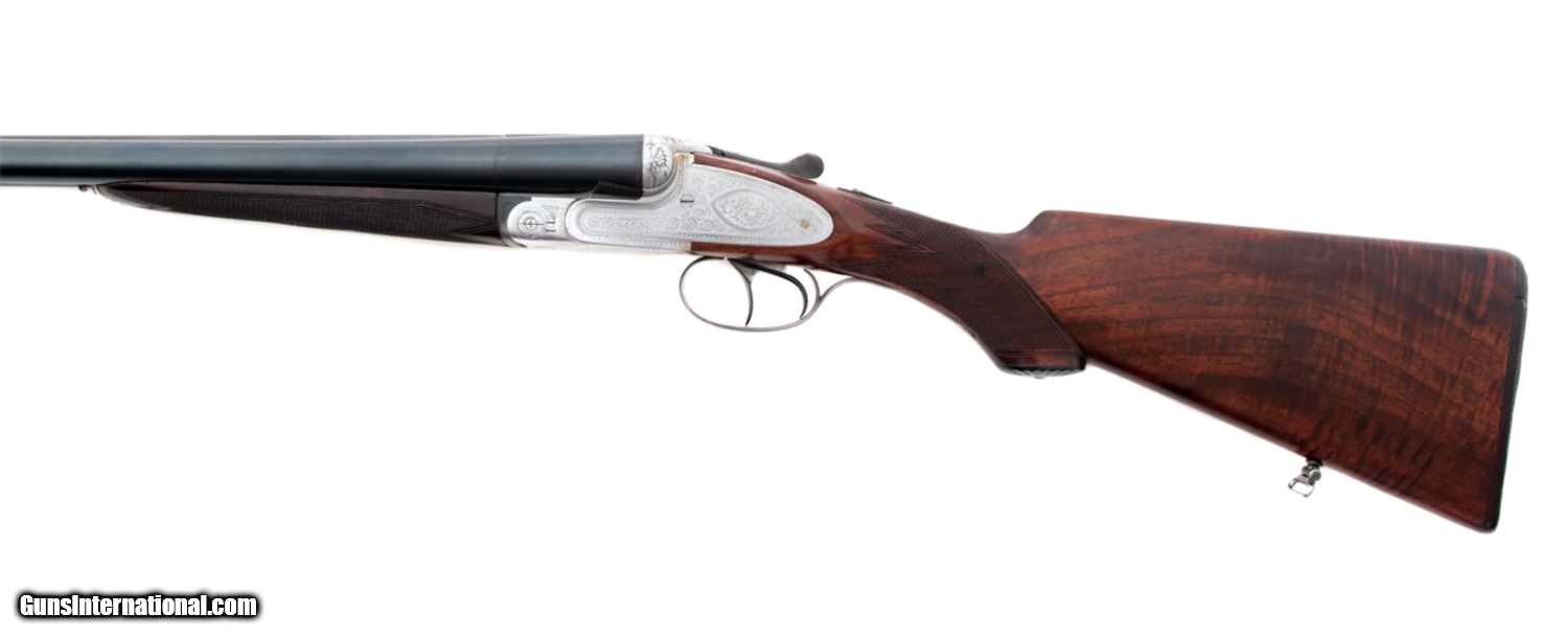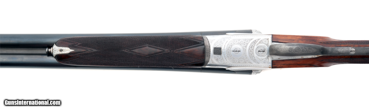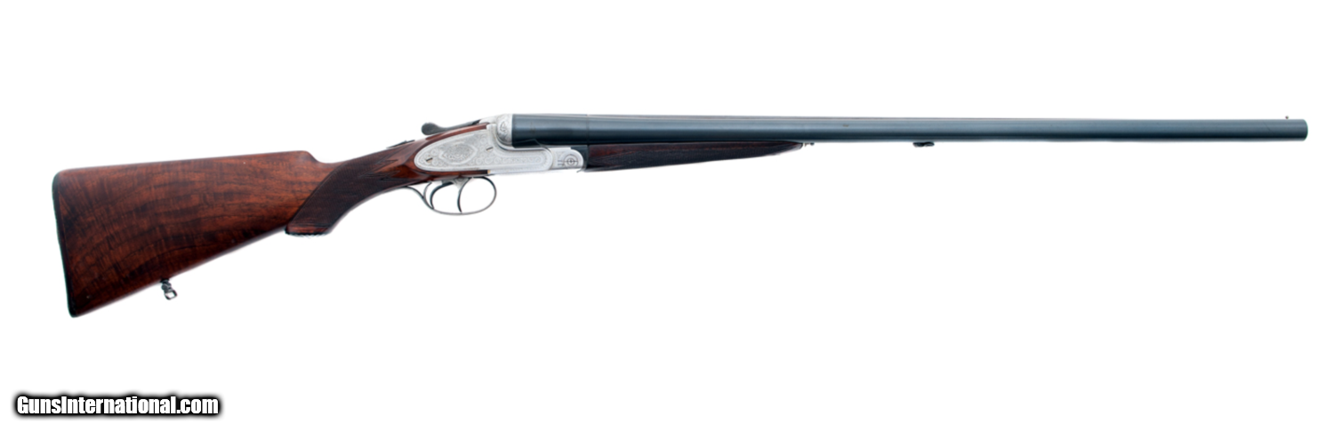 Description: Shotgun type: SxS Action: Sideplate Boxlock Ejectors: Yes Trigger: Double Grip: Prince of Wales grip Forend: Checkered Lop: 14 " Pad thickness: " Type of butt: Horn Buttplate Drop comb: 1 3/8 " Drop heel: 2 " Cast amount: 1/4 " Cast: OFF Weight: 7 lbs, oz Manufactured in: Italy Manufacture Year: Finish: Coin Overall condition: Good Stock condition: Good Metal condition: Good Stock: Original finish Metal: Original finish Type of Case: none Extra barrels: 0 Barrel info: Gauge: 12 ga Chamber: 2 3/4 " Length: 27 1/2 " Chokes: IM/XF Proof: " Reproof: " Rib type: Concave File Cut Comments : Gun is in very good condition with some light blemishes. SG-322 SOLD |