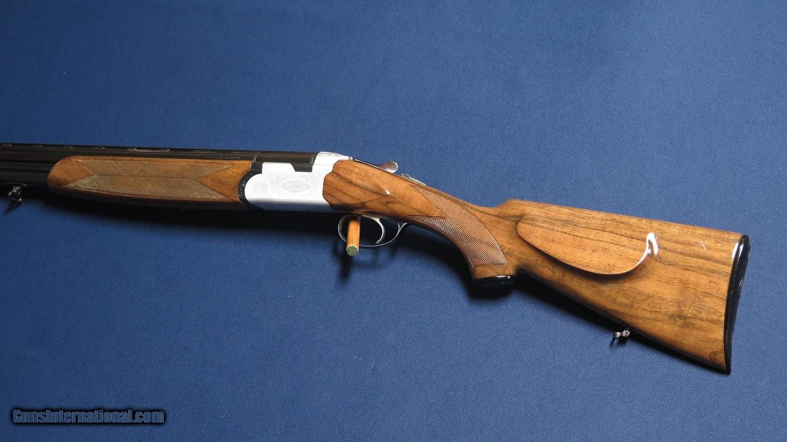 Description: Beretta S56E 12ga. 28 inch barrels. Mod and full. .023 .043. S.S.T. Ejectors. 14 1/8 LOP. 2 3/4 inch chambers. 98% blue finish. Woods show some hunting use. Action is tight. Top lever right of center. Excellent bores. SOLD Shotgun Gauge: 12 Gauge |