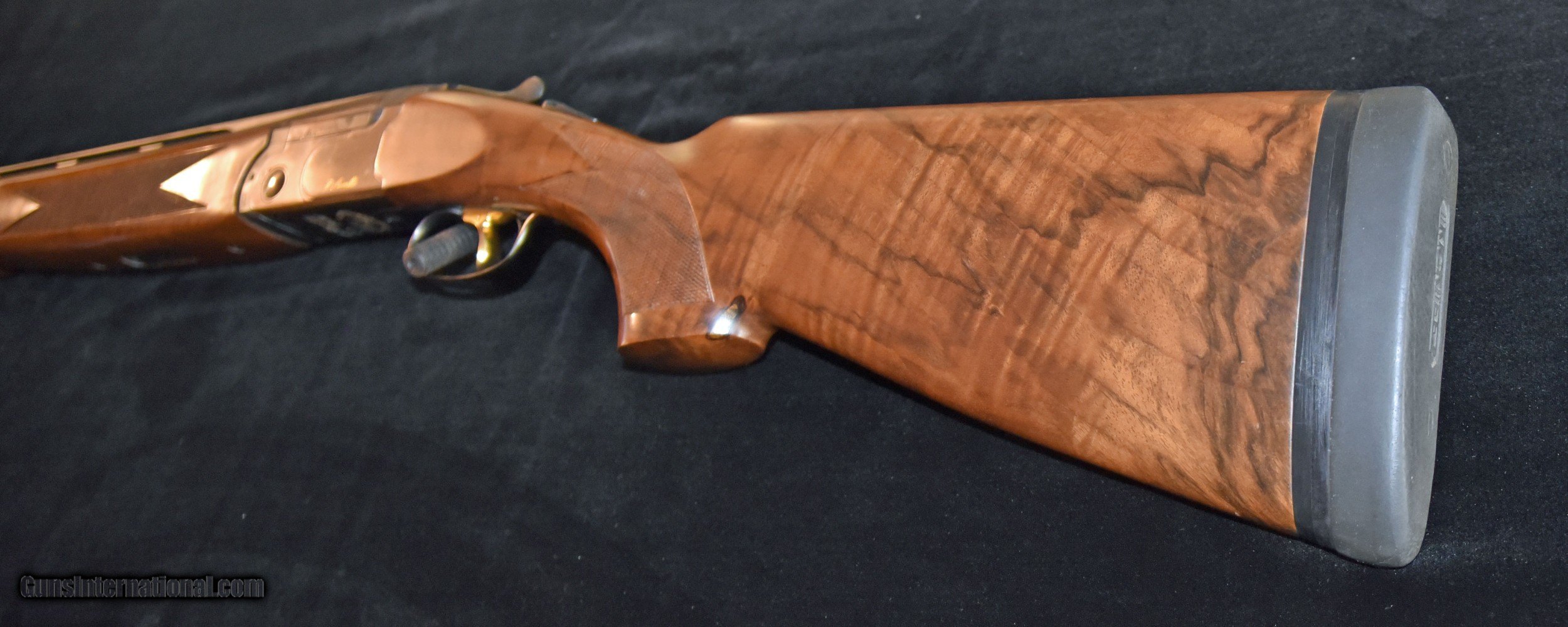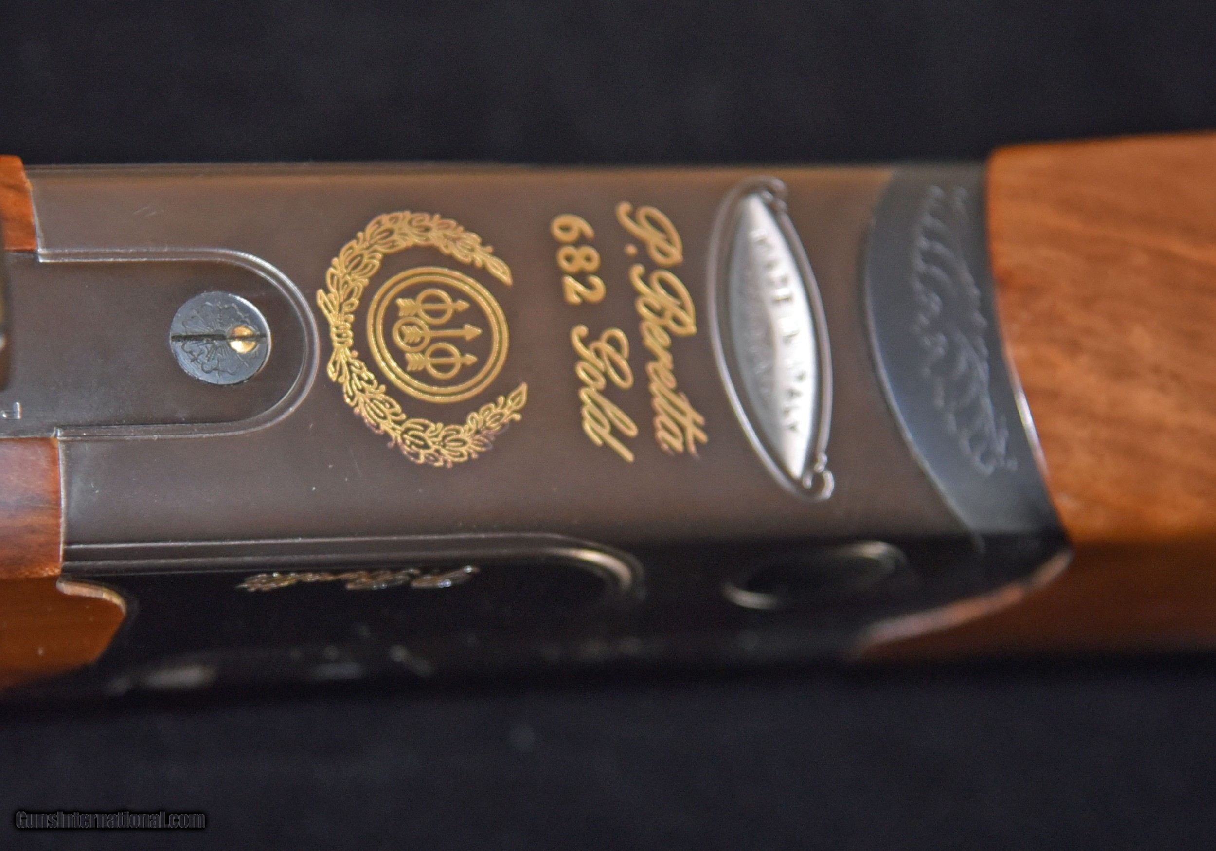 Description: Here we have a Beretta 682 Gold in excellent condtion ready for any of the shotgun clay sports. Shotgun is equipped with a nicely figured walnut stock with the dimensions of DAC 1.5", DAH 2.5" and LOP 15.25" (LOP can be shortened to 14.3/4" by removing the spacer between stock and recoil pad); there are some minor handling marks in the butt stock. Shotgun weights 8.6lbs; 29.5" barrels are ported and equipped with Beretta chokes (SK, IC, M & F) and a tapered VR 10mm-8mm. Gun is further equipped with a variable length trigger and an extra trigger and tools. This shotgun has been meticulously maintained and is in 98% condtion. Don't miss this one. SOLD Shotgun Gauge: 12 Gauge |