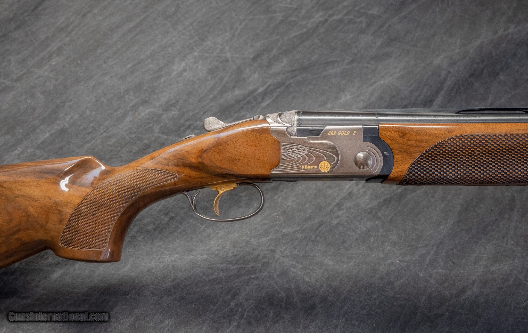 Description: Specifications Maker: BERETTA Model: 682 GOLD E SPORTING Gauge/Caliber: 12 GA Barrel Length: 30" W/ VENTED SIDE RIBS Chambers: 2 3/4" & 3" Rib Design: FLAT FILED, VENTILATED Weight: 7lbs. 7ozs. Bore/Chokes Choke Tubes: 2 OPTIMA EXT. BRILEY - FULL Stock Dimensions Drop At Comb: 1 1/2" Drop At Face: 1 3/4" 4 1/2" Drop At Heel: 2 5/16 Cast At Face: 1/8" OFF 4 1/2" Cast At Heel: 1/8" OFF Length Of Pull: 14 3/4" Pitch: 2 1/2" 5 DEGREES Special Features: DUAL COLOR FINISHED RECEIVER W/GOLD HIGHLIGHTS & TRIGGER SINGLE SELECTIVE TRIGGER EJECTORS MANUAL SAFETY GLOSS FINISH PISTOL GRIP STOCK W/UNIQUE WIDE CHECKERING & 3/4" BERETTA RECOIL PAD SCHNABEL FOREARM MAKER'S HARD CASE CONDITION: EXCELLENT MSRP: $4050. Circa: 2001-14/ SERIAL #N72749B Number: C9594 SOLD |