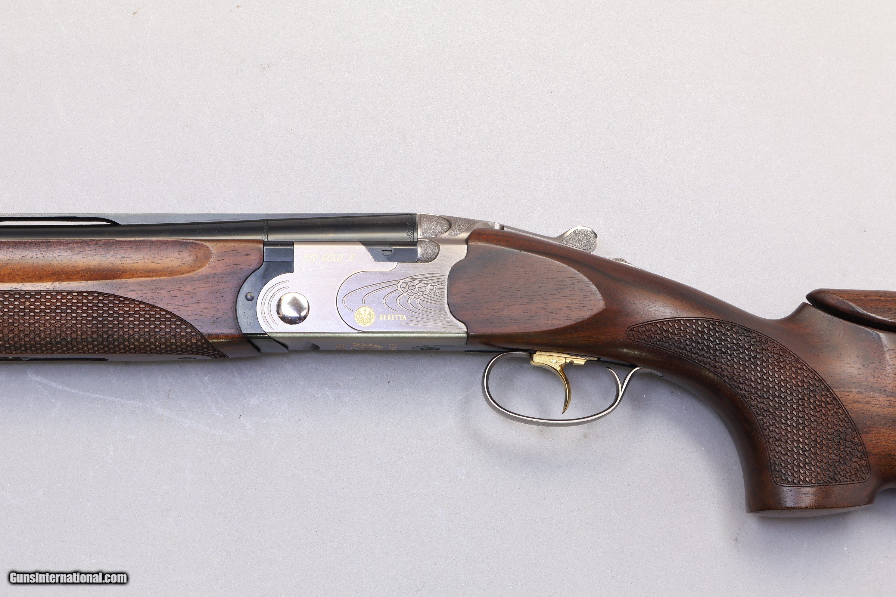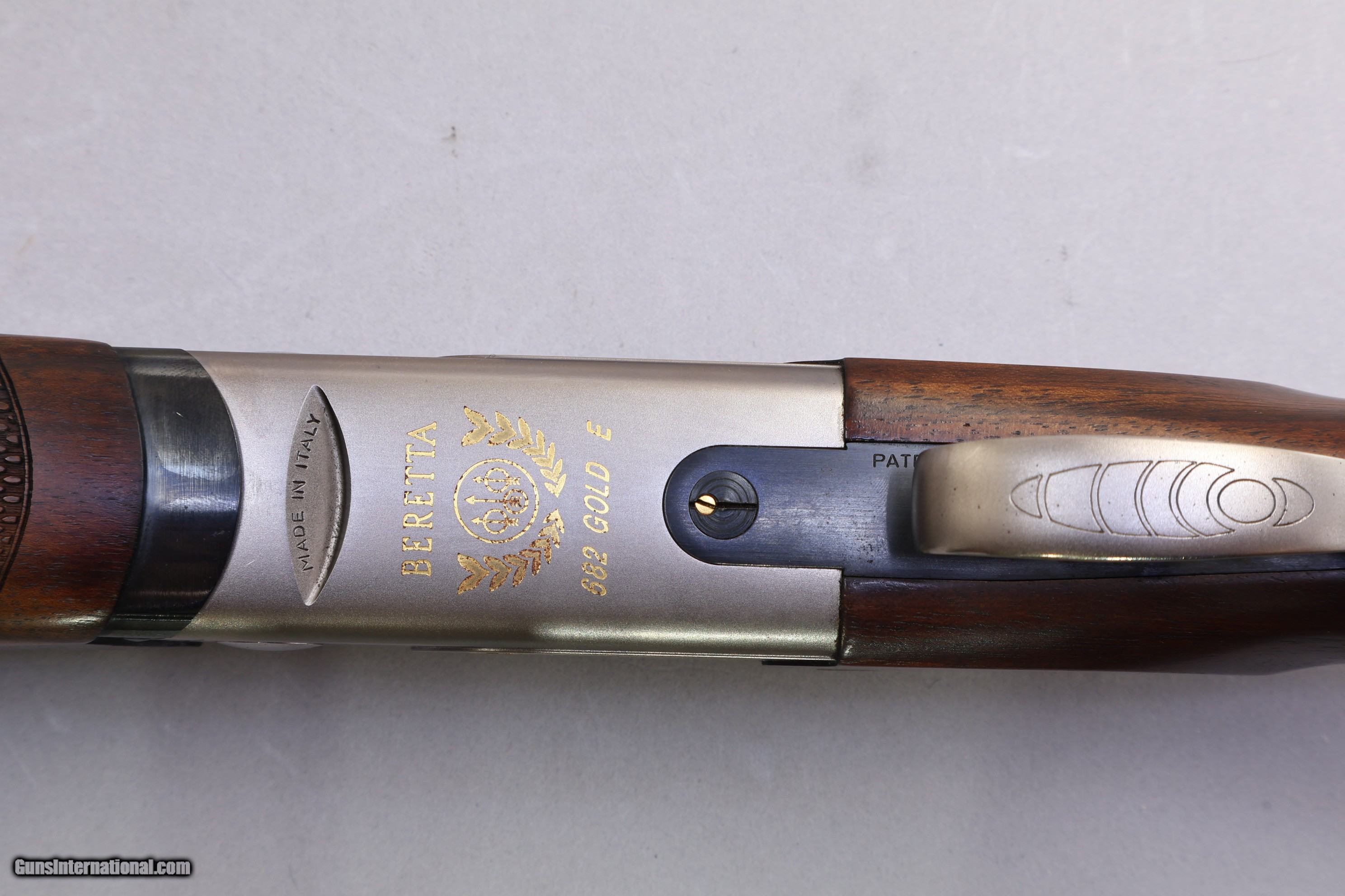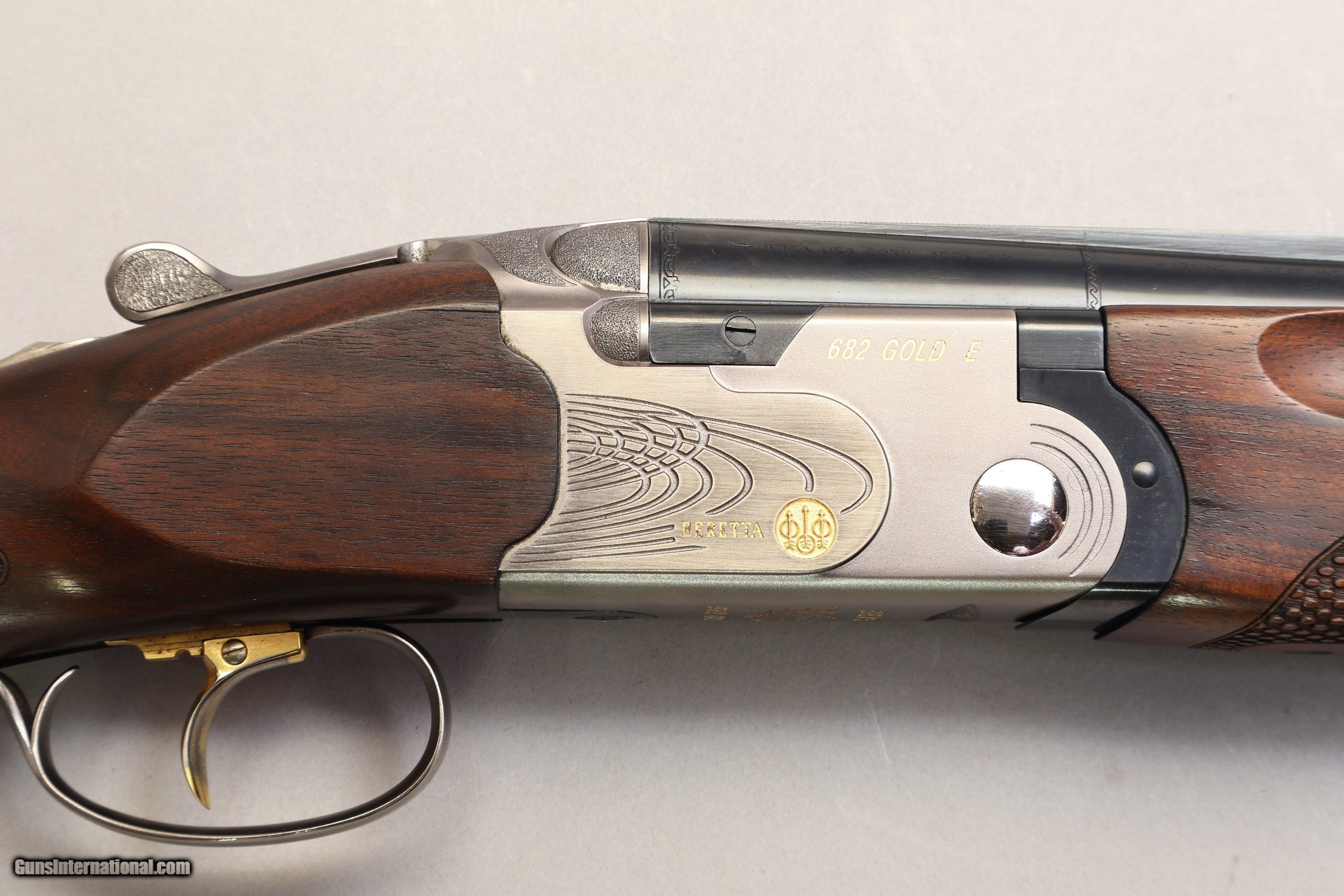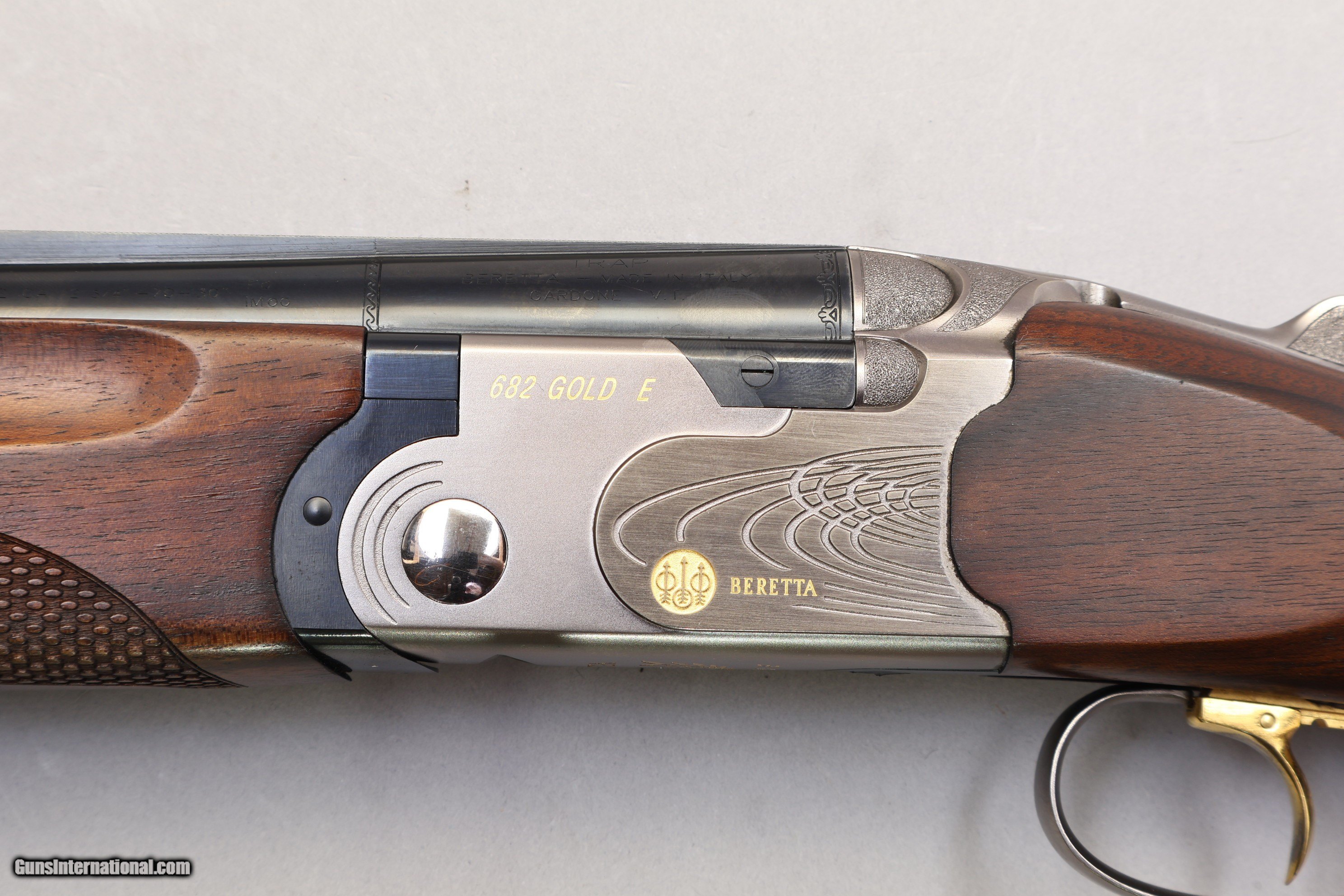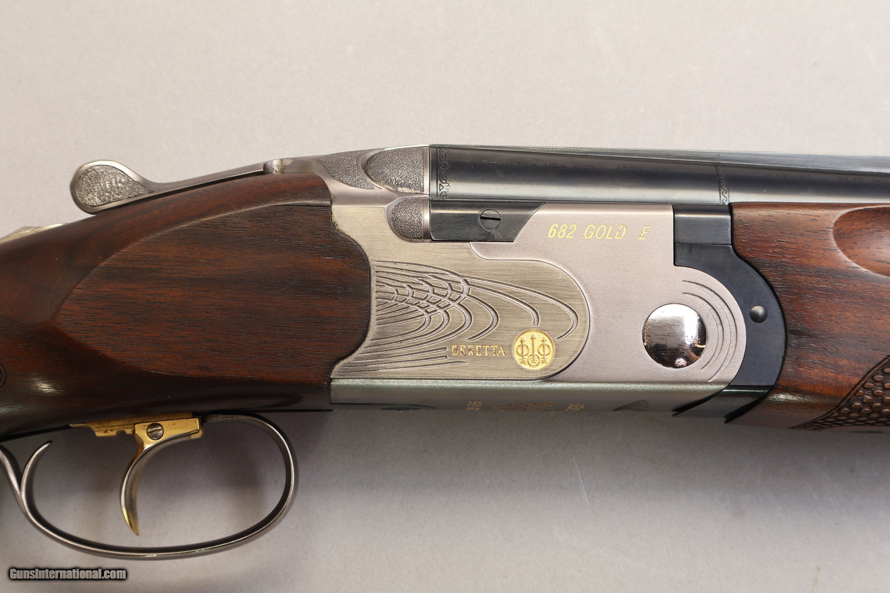 Description: Beretta 682 Gold E 12 Ga 30" Barrels Fixed Chokes 30" Barrels | Fixed: Full & Modified | Overall Length 49 1/2" | Case: Original Case Beretta 682 Gold E in 12 Ga, a classic Italian-made over/under sporting shotgun built with 30" barrels, fixed Full & Modified chokes, and a ventilated parallel rib. It features a wood stock with a pistol grip and adjustable comb for a precise fit, and a palm swell on the right for comfortable handling. Stunning wood and in excellent condition overall - 98% condition. Small blemish on gold logo on the underside of action. Comes in the original case with stock tool, extra Beretta recoil pad, spare trigger and sights. Trigger is adjustable. It is a used gun but it has been looked after and cared for.