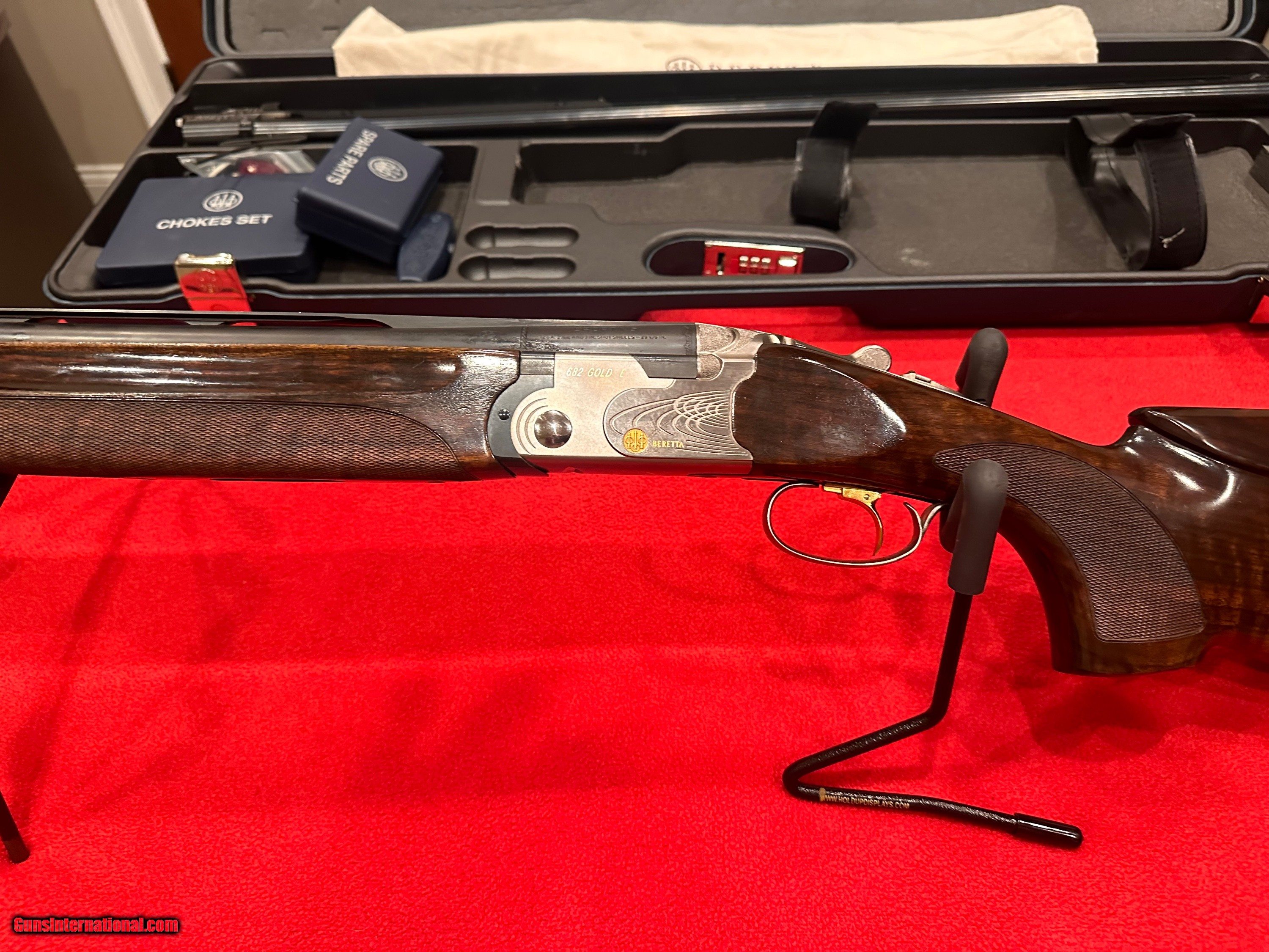 Description: Beretta 682 gold e combo 30" O/U with removable factory chokes 34" unsingle with adjustable wheel. adjustable comb 14.5 LOP BEAUTIFUL dark wood very light handling marks factory case Add 75$ For insured shipping to FFL NO TRADES SOLD |