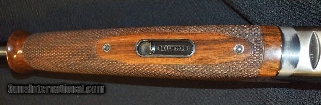 Description: Beretta 682 Gold E Sporting Model O/U shotgun. This shotgun features the reliable and well-built 682 action from Beretta, built into a premium sporting clays shotgun with beautiful walnut stock and forearm, competition-style textured grip, a fully adjustable comb with a palm swell and cast for right handed shooters. The receiver has a matte coin finish and gold accents with the barrels finished in a rich blue. The shotgun includes a 30" barrel with 3" chambers and a vent rib which is threaded for Optima chokes that are included. The shotgun is in excellent working order with a smooth action, crisp & light trigger pull and brilliant bores. Some finish wear and small dings can be seen in areas of the stock and forend, as well as finish scuffs on the barrels and receiver. Included with the gun is the Beretta factory case, manual and 4-choke set. 14.5" LOP. SOLD |