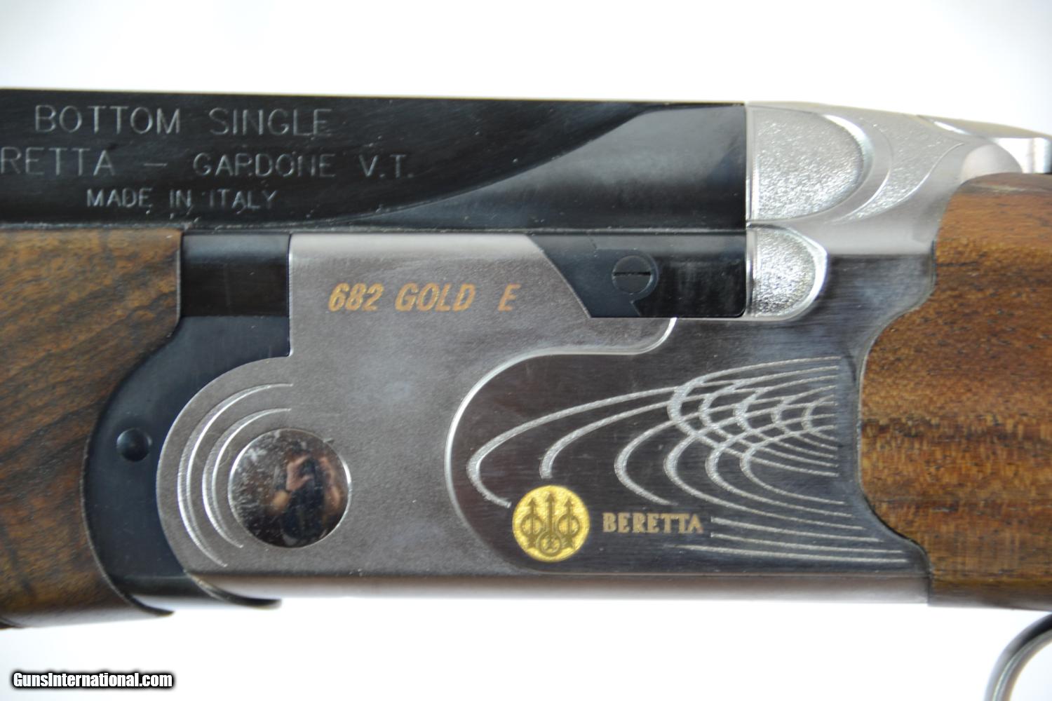 Description: Beretta 682 Gold E Trap 12ga 30" Pre-Owned Shotgun SN:R71049S This shotgun is a Beretta salesman demo gun. Has been handled but very little use. Beretta gives a 60 day warranty for all "Y" demo guns but Cole Gunsmithing is extending our warranty for 1 year for all mechanical problems. Federal firearms laws do not allow us to ship firearms directly to you. Please contact us for ordering and shipping information. Gauge: 12 Gauge Barrel Length: 34" Chamber: 3" Chokes: Interchangeable Flush chokes Length of pull: 14 5/8" Weight: 8lbs 10oz Warranty: 1 year Cole Warranty Hand: Right Drop at comb: 1.5" Drop at heel: 2.25" Cast at toe: 0.125" Pitch: 5° SOLD |
