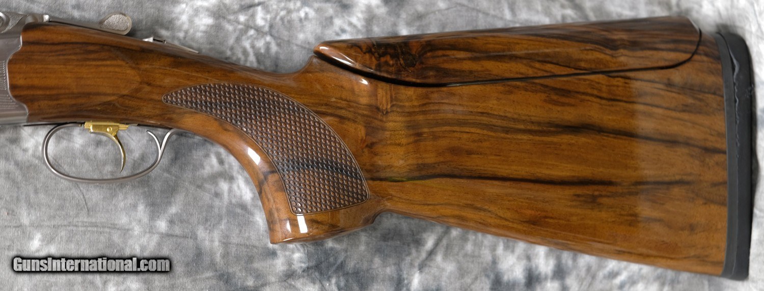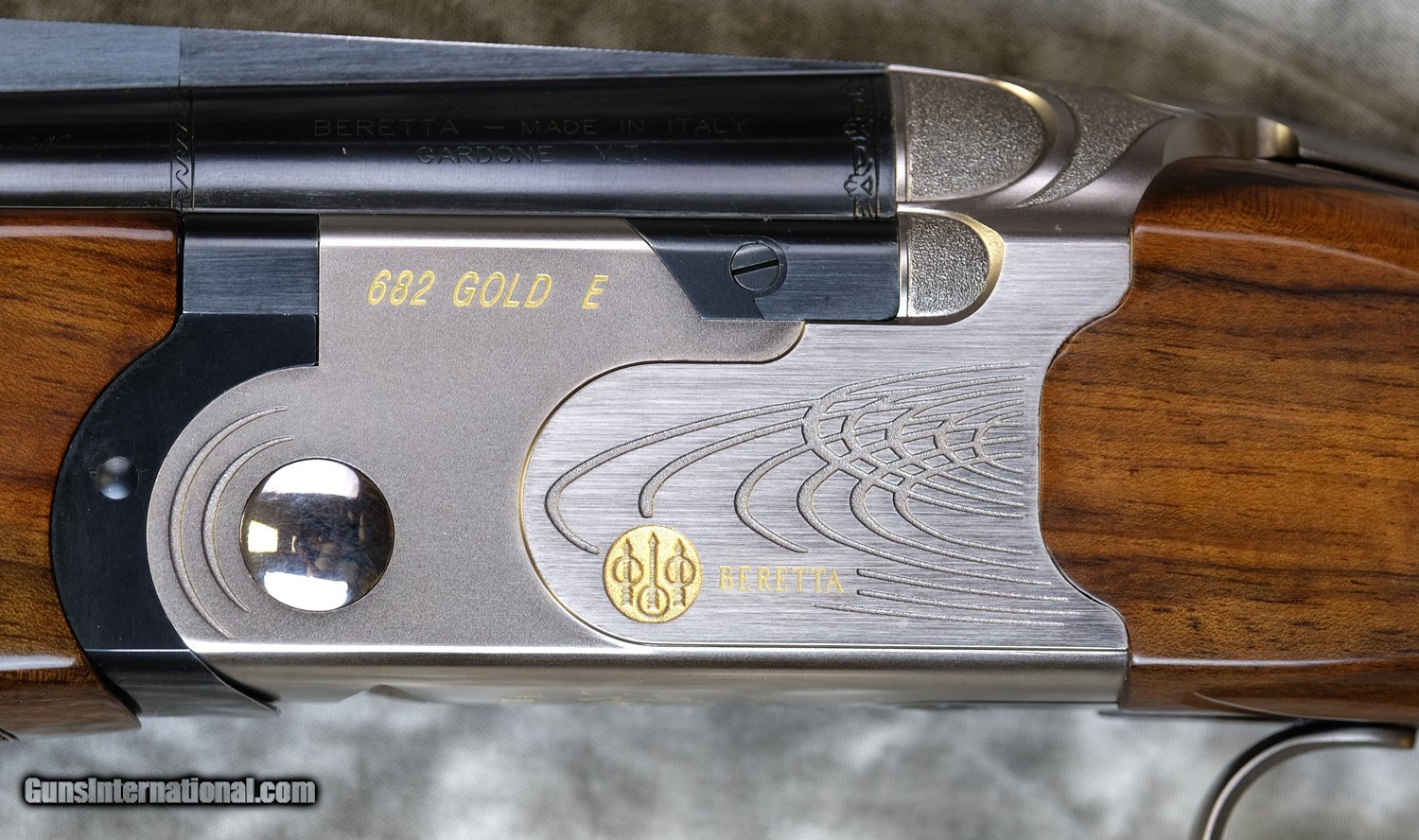 Description: Pre-Owned Beretta 682 Gold E Trap Combo 12GA with 34" top-single barrel, ramped tapered rib with Optima chokes, additional 32" O/U barrels with ramped tapered rib. Gold E engraved nickel finished action, factory Monte Carlo adj. comb stock with right-hand palmswell, beavertail forearm. Very minor handling marks, overall excellent condition. Includes case, chokes and tools. Consignment, ineligible for trade-ins. SOLD Shotgun Gauge: 12 Gauge |