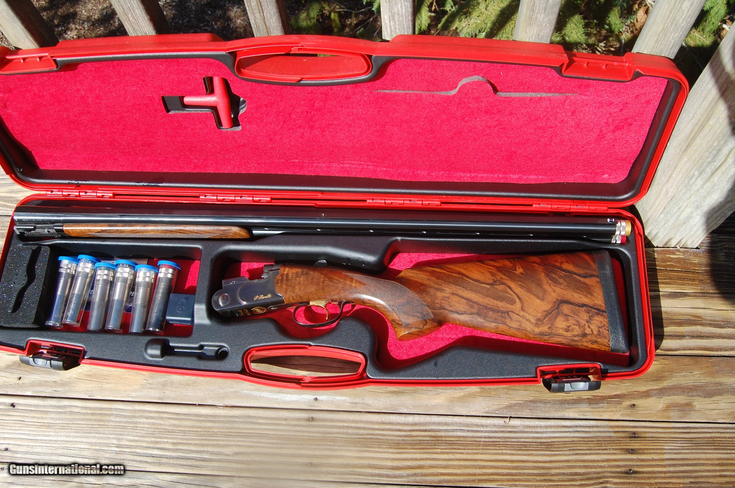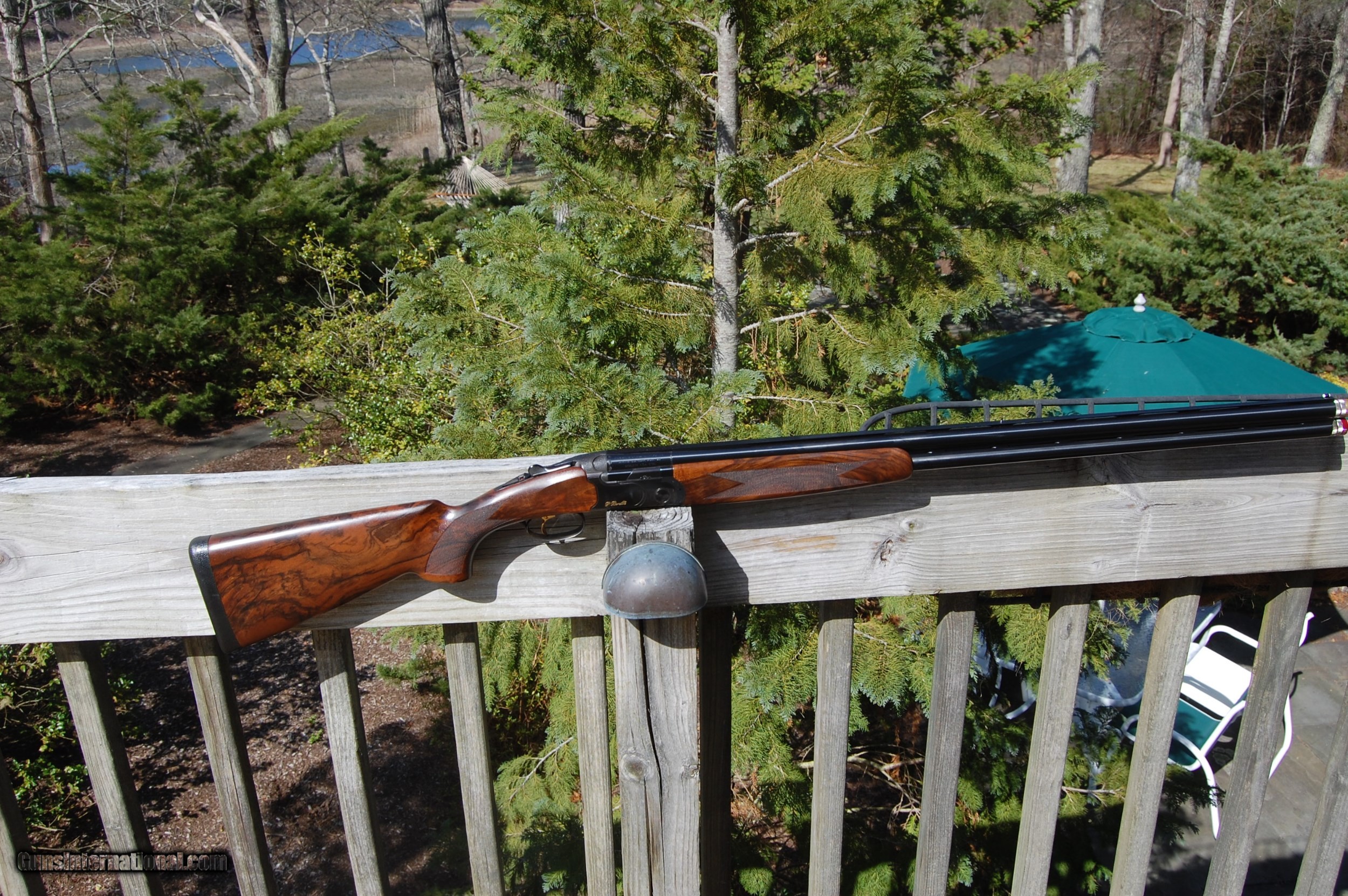 Description: Beretta 682 Gold Greystone with 32" Sporting bbl., AAA wood upgrade from Coles, eight Beretta Optima HP extended chokes (C, SK, SK, IC, M, IM, F, F), extra trigger shoes, case, LOP - 14 3/4" DAC - 1 1/2" DAH - 2 1/4" Cast off - Approx. 3/16" with palm swell Weight - 8 lbs. 6 ozs. Bbls. only - 3 lbs. 6 ozs. +99% condition SOLD |