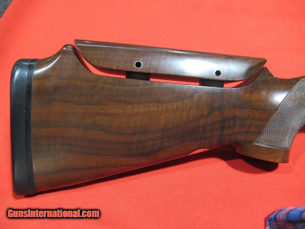 Description: Beretta 682 Gold Trap O/U with a Wilkinson installed rib, back bored barrels, and tuned choke tubes that have been locked in barrels. Professionally installed adjustable comb by Dave Berlet, 14 1/4" LOP over a Kick-Eez pad, ported barrels. Very good condition overall and has a great looking stock and forend. Comes with a Krieghoff Americase. Barrels measure out to .734" - .715" in the bottom barrel and .734" - .702" in the top barrel. SOLD |
