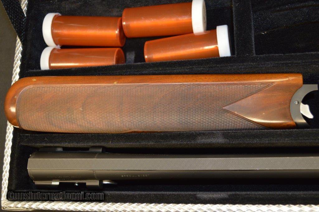 Description: SOLD *** This is a Beretta 682 12 gauge, marked Special Skeet, with 28" barrels. The gun comes in a heavy duty Nasco Aluminum All American case that holds the gun as well as the set of full length Briley subgauge tubes that are in 20, 28 and .410. The wood is in very good condition with only a few minor bumps. The barrel blue is 100%. The length of pull is 14" to a Kick-Ezz pad. The drop at the comb is 1-1/2" and the drop at the heel is 2-1/4". The chamber length is 2-3/4" and the bores are bright and shiny. The barrels have been fitted with Briley thin wall chokes and there are several chokes included in the set. The gun has a single selective trigger with the barrel selector incorporated into the safety that's on the top tang so either the top or bottom barrel can be fired first. SOLD Shotgun Gauge: 12 Gauge |