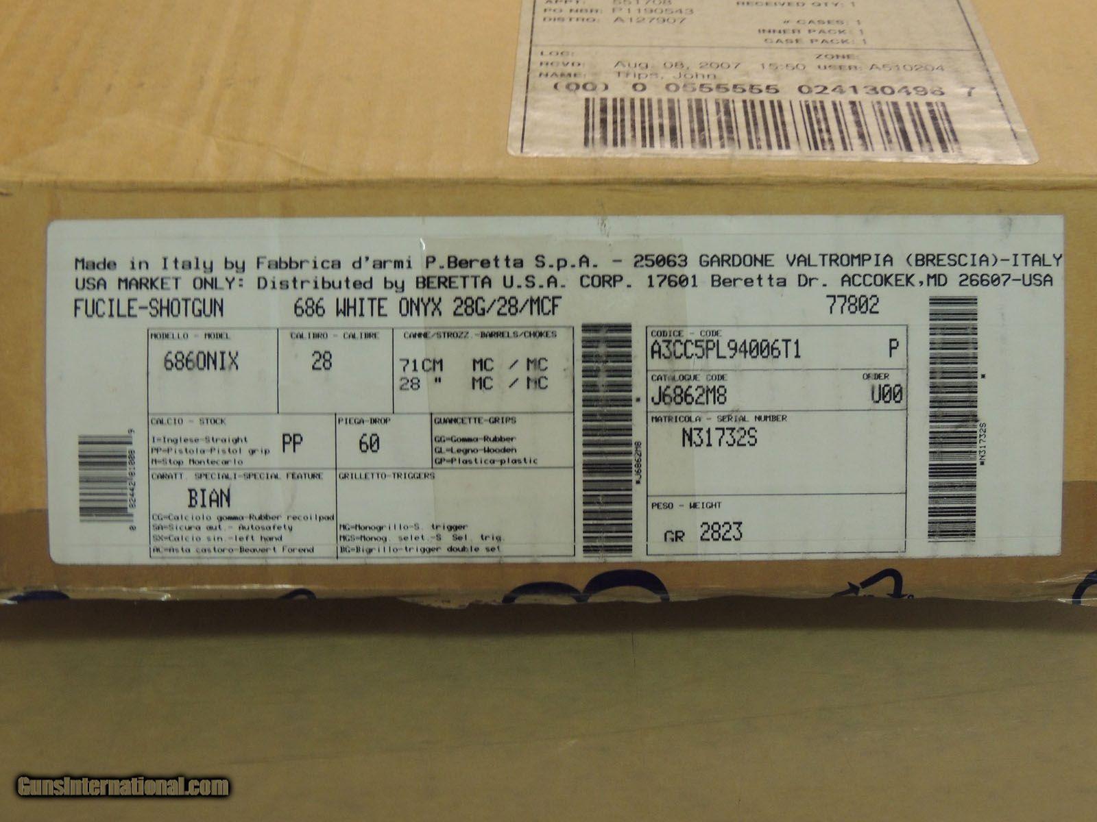 Description: BERETTA 686 28 GAUGE WHITE ONYX OVER UNDER SHOTGUN IN CASE, 28" MOBIL CHOKE BARRELS, TUBES INCLUDED FULL, IMPROVED MODIFIED, MODIFIED, IMPROVED CYLINDER, 98% OVERALL IN CASE AND SHIPPING SLEEVE WITH ACCESSORIES AS SHOWN $1799 ******* (PLEASE REFERENCE OUR INVENTORY NUMBER) (PAYMENT OPTIONS) (Postal Money Order) (Cashiers Checks) (Personal Checks (Item held until Check Cleared) ***(Layaway 120 days-(No Interest)-(Pay any way, any time you like over the term) -(Deposit required)*** (Credit Cards Visa or Master Card 3% fee added to total sale) (GA residents 7% sales Tax Applies) (FAX 888-597-1394) (BEST PHONE/TEXT 229-424-8450) (Shipping $35.00) SOLD |