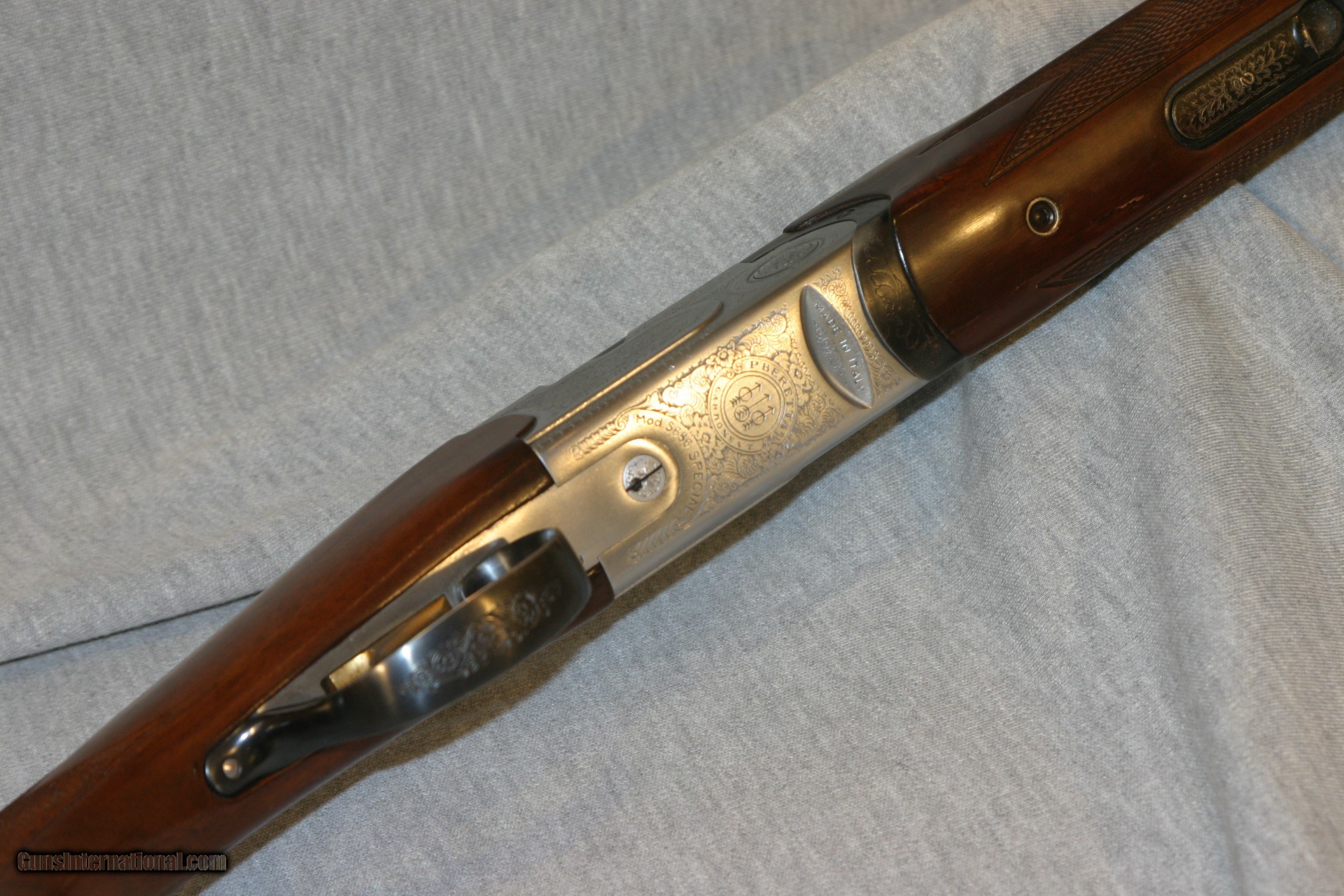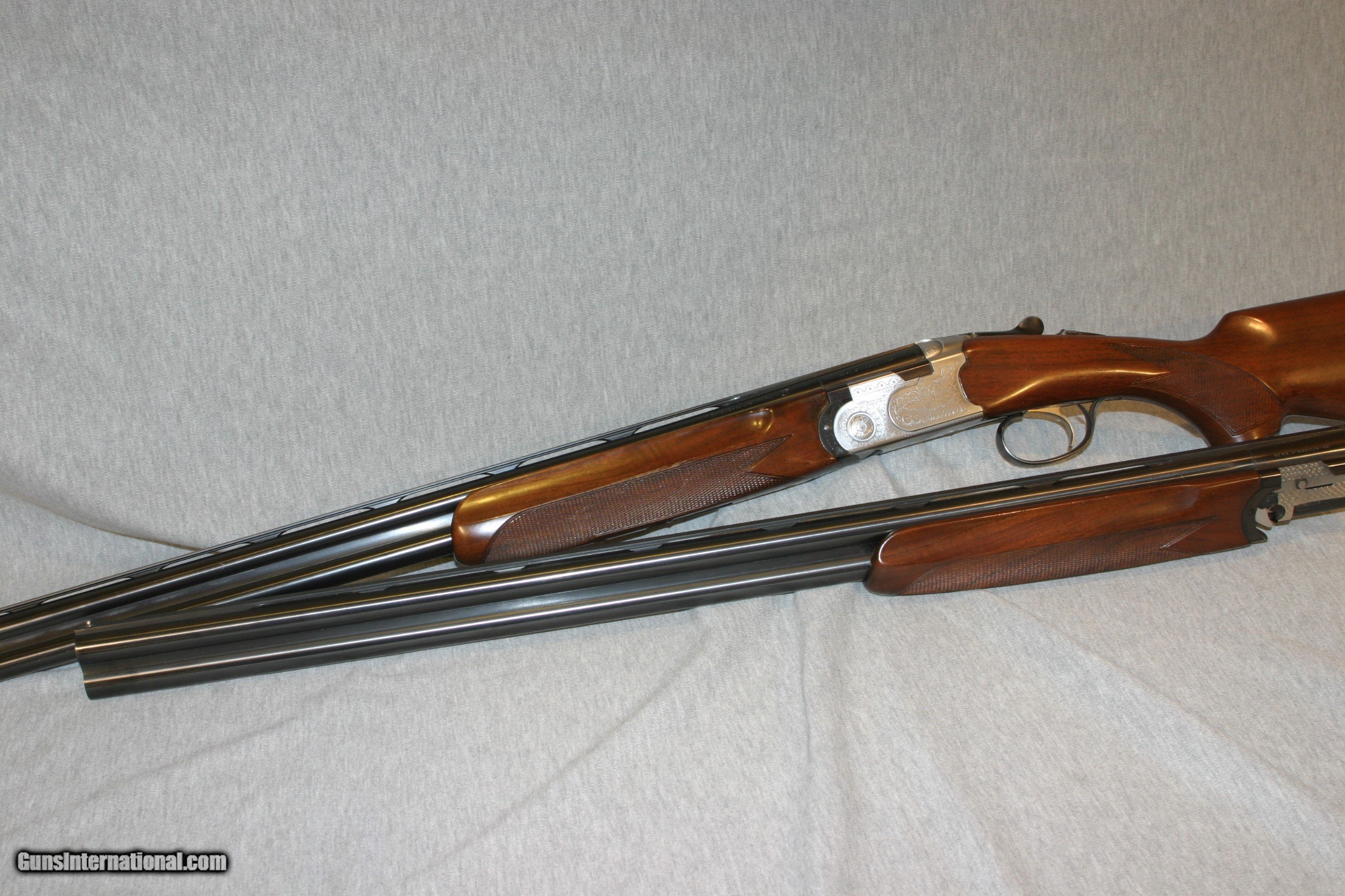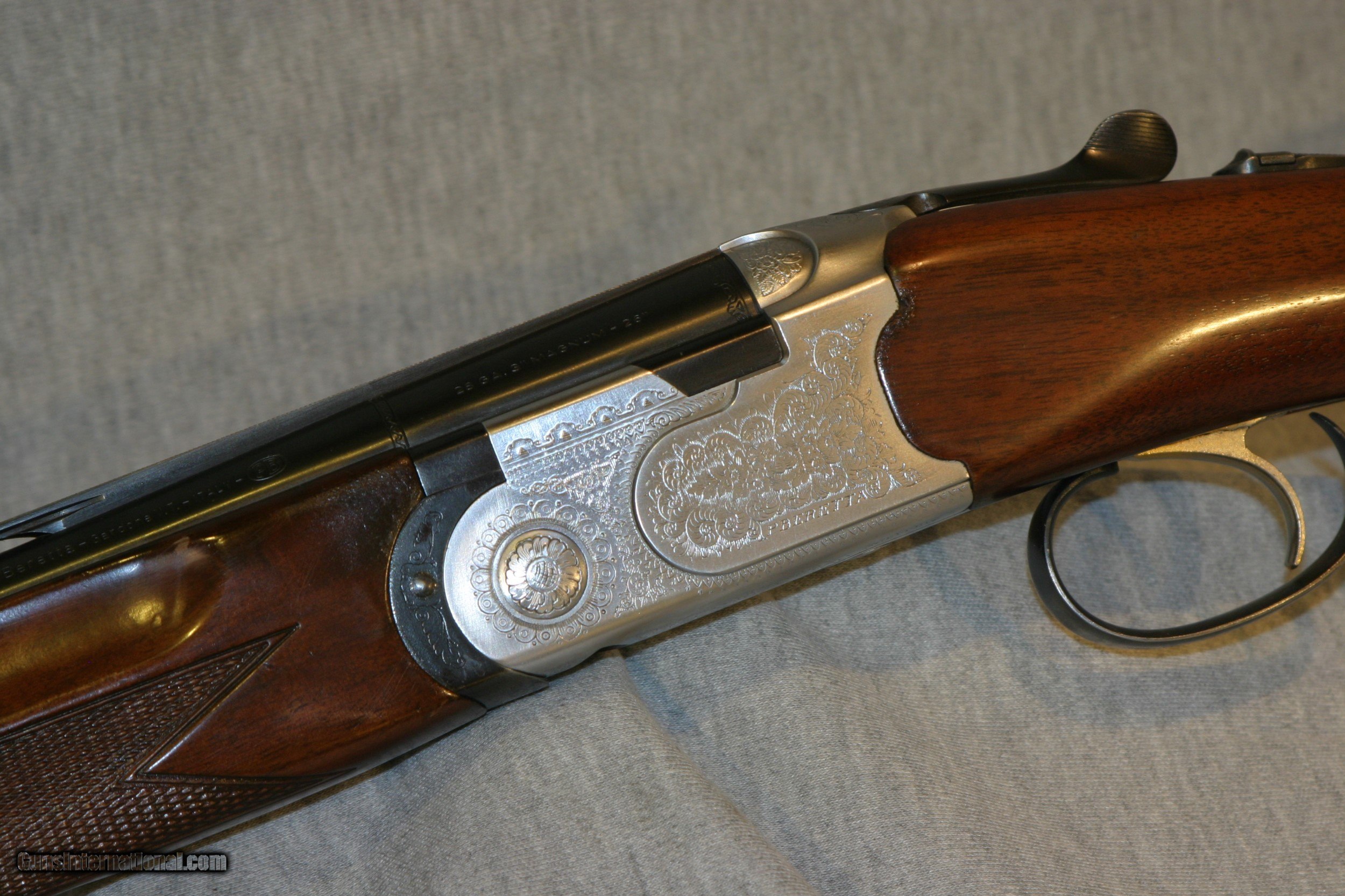 Description: ALL TIME BERETTA FAVORITE SHOTGUN, SMALL FRAME SILVER PIGEON WITH TWO BARRELS, ONE IS 20 GAUGE,28" VENT RIB WITH MOBILE CHOKES AND CHAMBERED TO 3",THE OTHER IS 28 GAUGE, 26 1/2" VENT RIB ALSO WITH MOBILE CHOKES 2 3/4" CHAMBERS EARLY GUN WITH THE ORIGINAL COIN FINISH ON THE LIGHT SCROLL ENGRAVING! 1992 LOP 14 1/4"- 1 1/2"- 2 1/4" SOLD |