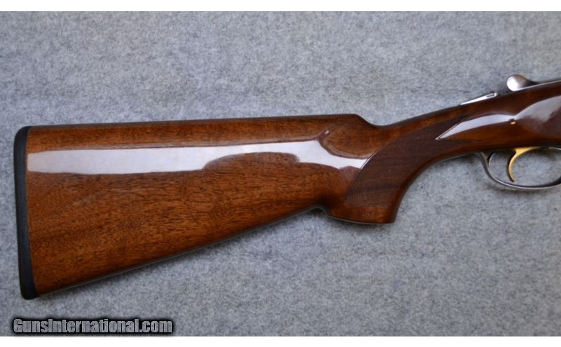 Description: This is an excellent example of a Beretta 686 Onyx which were introduced in 1997. The shotgun is in excellent with only light abrasions on the stock. SOLD Caliber Info: 20 Ga. Chambers: 3 inch. with over/under ejectors. Metal Condition: Like New. Wood Condition: Very good with light dents and abrasions. Bore Condition: Like new bright shiny bore. Barrels: 26 inch. Triggers: Single gold. Stock: High gloss checkered wood stock. Stock Dimensions: LOP - 14 1/2 inch. Fore End: Checkered wood forend. Butt Pad: Black rubber Beretta butt pad. Weight: 6 pound. Sights: Ventilated rib with silver bead front sight. Chokes: Screw in choke with IM and Mod chokes. Extras: Beretta case, 5 spare chokes (IC, Full, Mod, Full, IMP Mod), choke wrench, spare butt pad, and owner manual. Item Location: Hammond, IN |