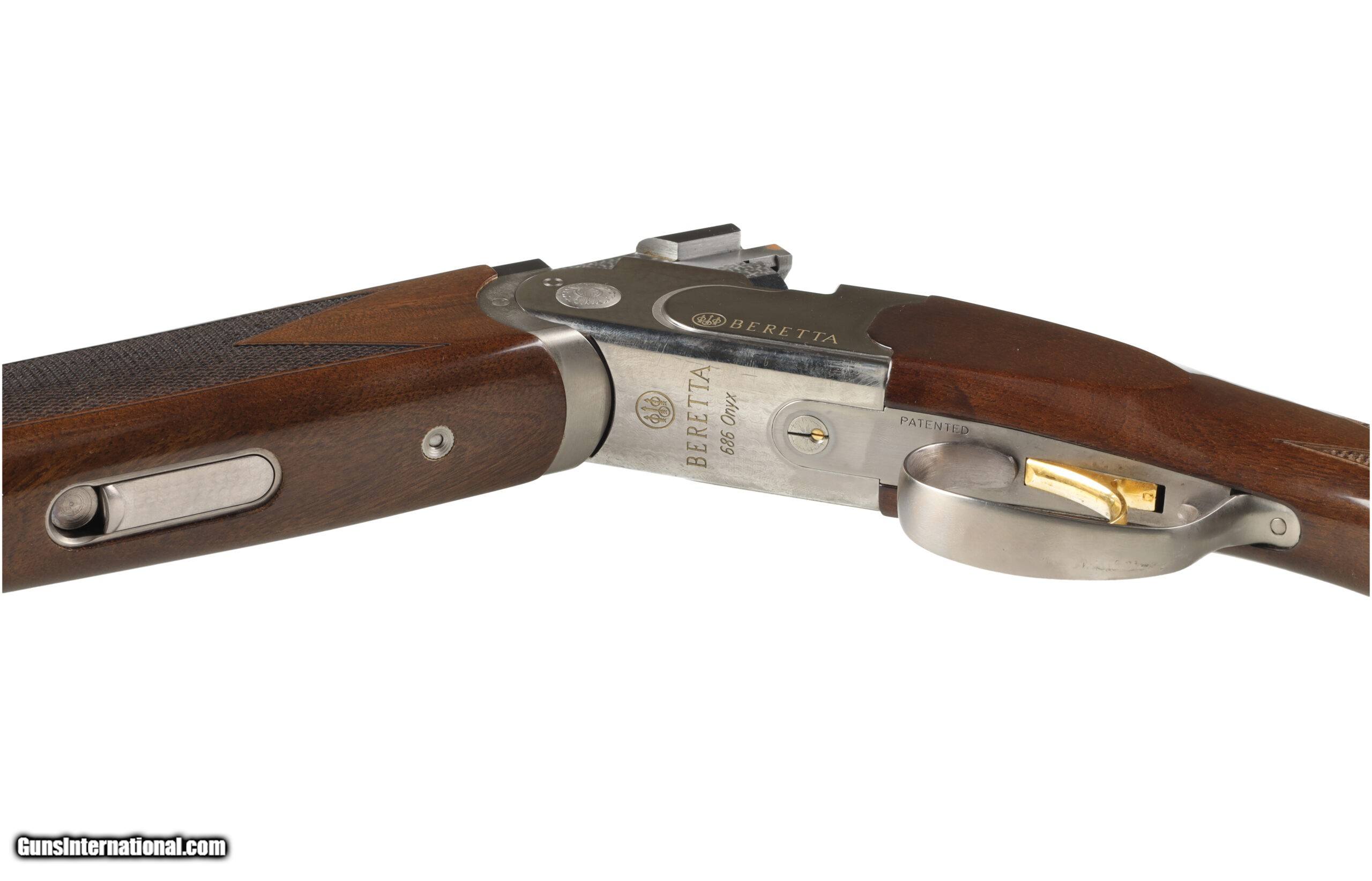 Description: The 686 Onyx is another option in Beretta's legendary line of 686 compact action over/under shotguns. This example is in very good overall condition with little wear. Manufactured in: Italy Hand: Right Hand Action Finish: Coin Metal Finish: Original Barrel Length: 26 Inches Barrel Condition: Very Good Stock Finish: Original Stock Condition: Very Good Type of Butt: Factory Pad Grip: Pistol Forend: Checkered Schnabel Cast Amount: 3/16" SOLD Manufacturer: Beretta Model: 686 Onyx Chambers: 2 3/4 Ejectors: Yes Condition: Preowned Metal Condition: Very Good Action: Over / Under Triggers: Single Gauge Info: 28 Gauge Stock Comb: 1 1/2 Stock Heel: 2 3/16 Stock Cast: Off Fore End: Checkered Schnabel LOP: 14 5/8 Rib: Ventilated Finish: Original Weight: 5.8 lbs Chokes: 5 Factory Chokes Case: Makers ABS Case |