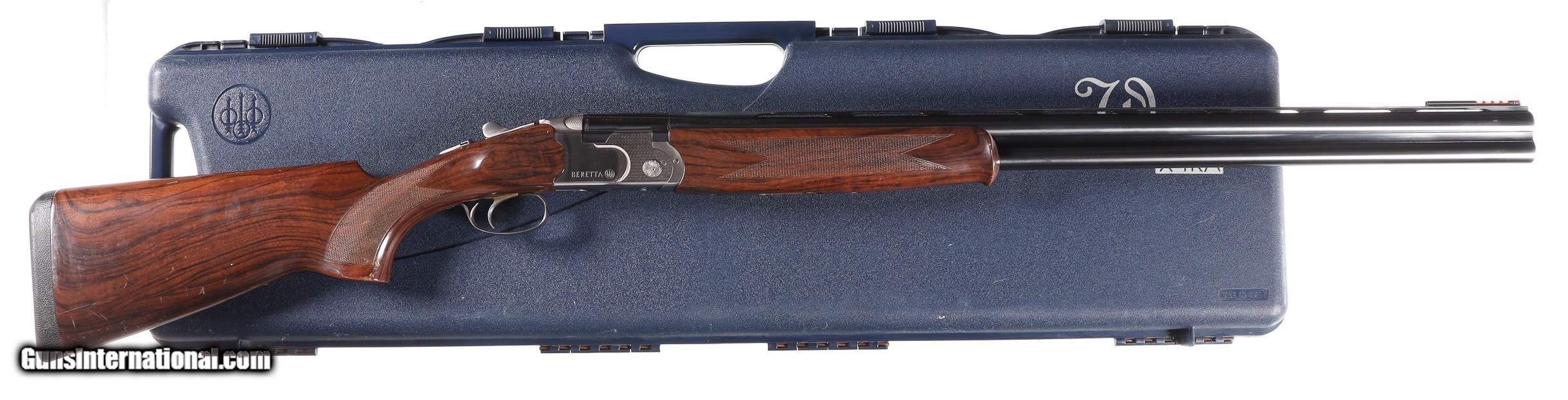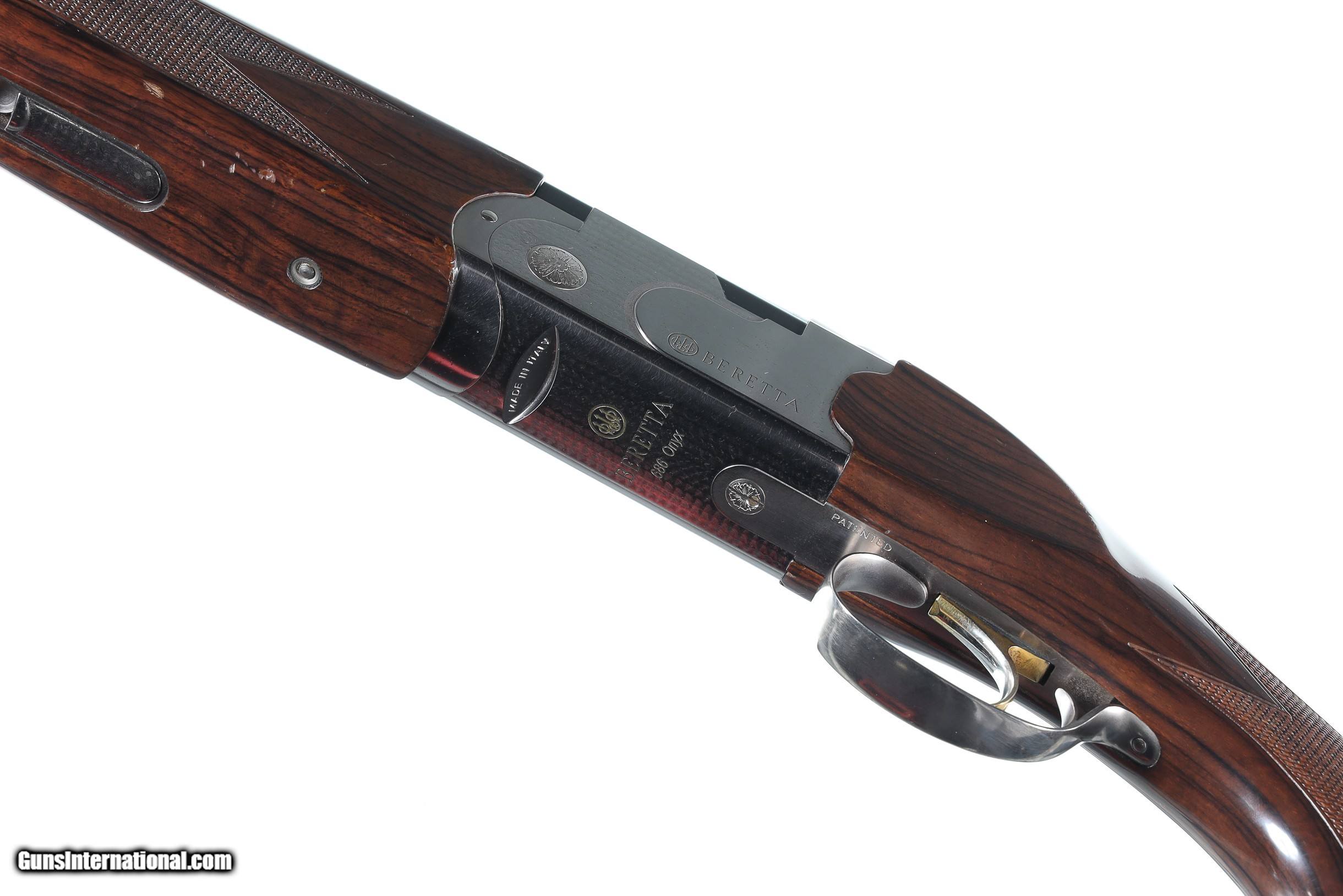 Description: Beretta Model 686 Onyx 12 Ga. Over under shotgun with 30" vent rib bbl with 3" chamber and interchangeable chokes. Gold accented single selective trigger with ejectors. Coin finished box lock receiver with nicely figured varnished checkered pistol grip walnut stock with factory recoil pad and furnished with factory case with additional chokes and wrench.14 1/2" LOP 1 1/2" DAC 2 1/4" DAH. Condition. Metal is very fine with slight wear. Bores are excellent and action mechanically excellent. Stocks have a number of impressions, bruises, and light scratches. Case is very good. • Free Shipping, No Credit Card Fees. • Lay-a-way available for this firearm. • 1/3 Down, a 1/3 in 30 Days 1/3 in 60 Days. SOLD Shotgun Gauge: 12 Gauge Manufacturer: Beretta Model: 686 Onyx Serial Number: P67239B Barrel Length: 30 |