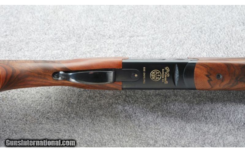 Description: A spectacular addition to the Beretta lineup and only available at Cabela's. The Onyx Pro Sporting is loaded with the features you wanted: great stock dimensions, great handling dynamics, tapered vent rib with double beads and oil finished stock. Best of all - the wood on these guns would normally have required a substantial investment to upgrade on the aftermarket. Comes in a Beretta moulded case. SOLD Manufacturer: 2012 Caliber Info: 12 Gauge Chambers: 3 inch Metal Condition: New in box Wood Condition: New in box Bore Condition: New in box Barrels: 32 inch Triggers: Single selective Stock: Checkered grade 3 Turkish walnut pistol grip stock Stock Dimensions: 14 5/8 in. LOP, 1 1/2 in. DAC, 2 3/8 in. DAH Fore End: Checkered grade 3 Turkish walnut with Schnabel tip Butt Pad: Beretta black pad Weight: 8 lbs. 1 oz. Sights: Tapered vent rib with double beads Chokes: Interchangeable choke tubes Extras: Box and accessories Item Location: Lehi, UT |