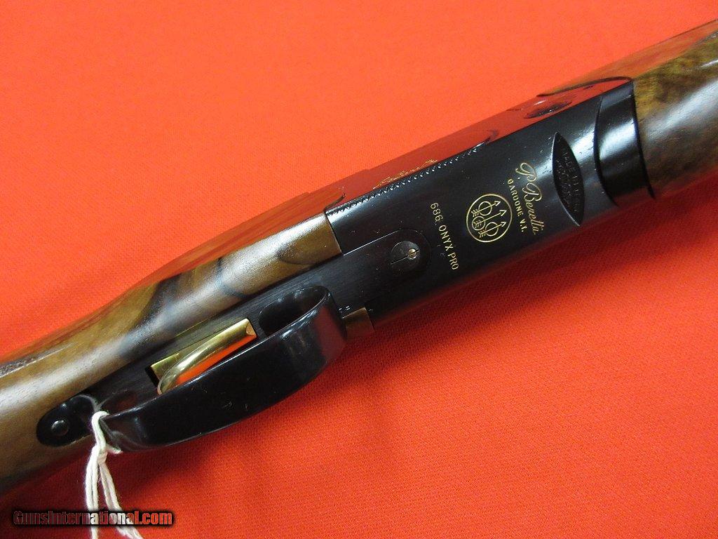 Description: Beretta 686 Onyx Pro Sporting 12ga/32" Optima Chokes (NEW)-- Limited production non-catlogued firearm -- 686 Onyx Pro Sporting with premium, oil-finished walnut stock and schnaubel forend. This gun features a blued receiver with gloss finish and gold accents. This gun includes a factory luggage case and three Optima extended choke tubes. Please call for pricing. These guns are a great value. SOLD |